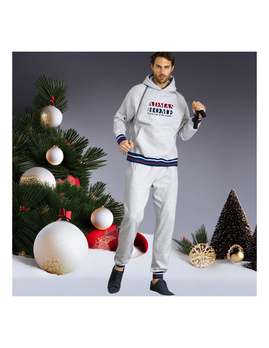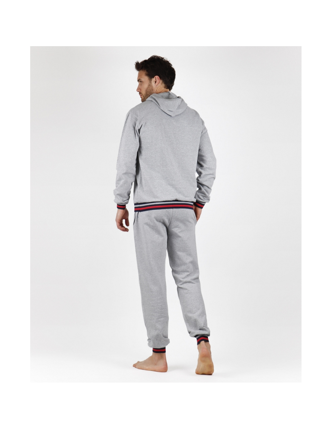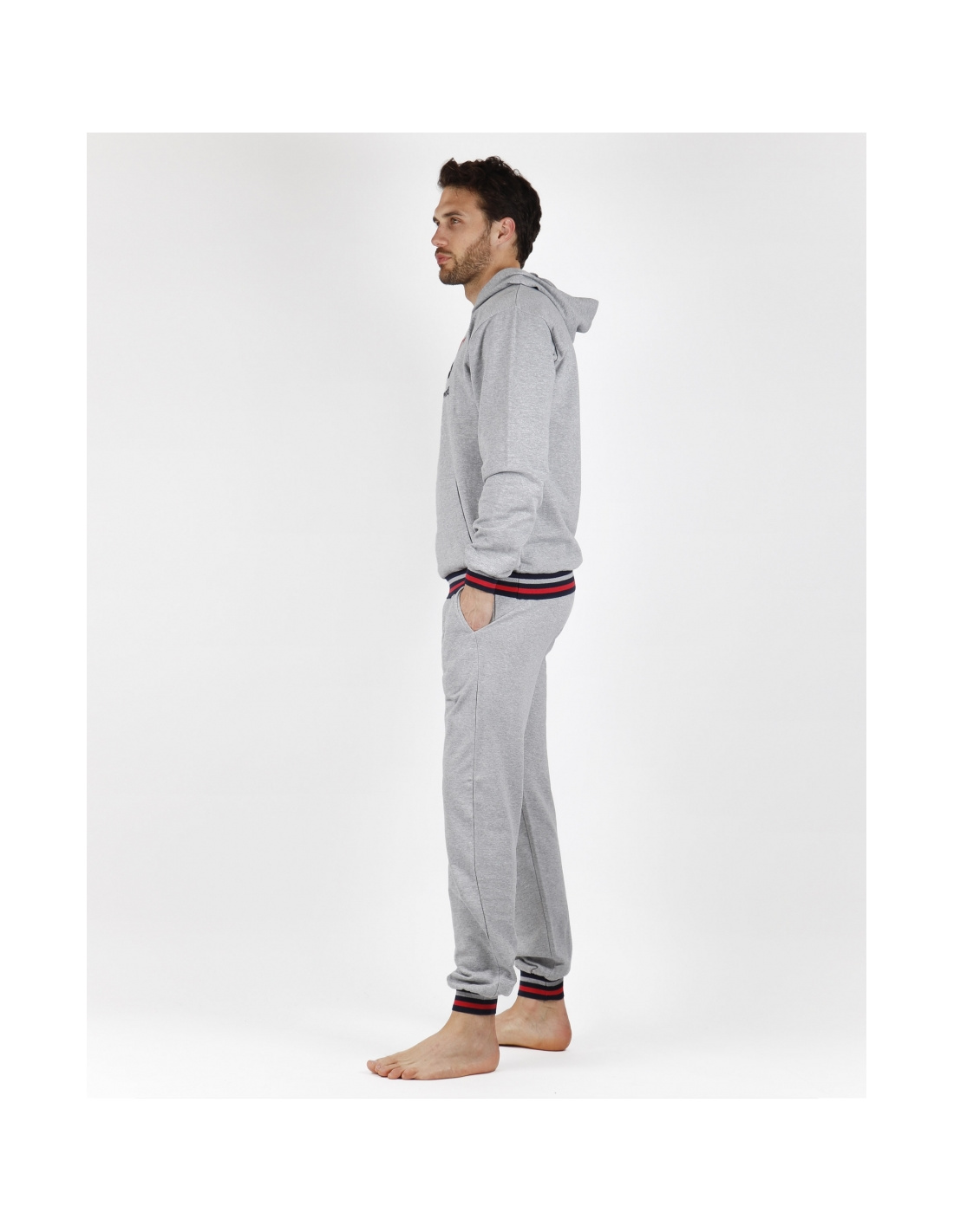 Pajamas in plush fabric (cotton tracksuit type fabric), long sleeves, round neck and long pants with hood.