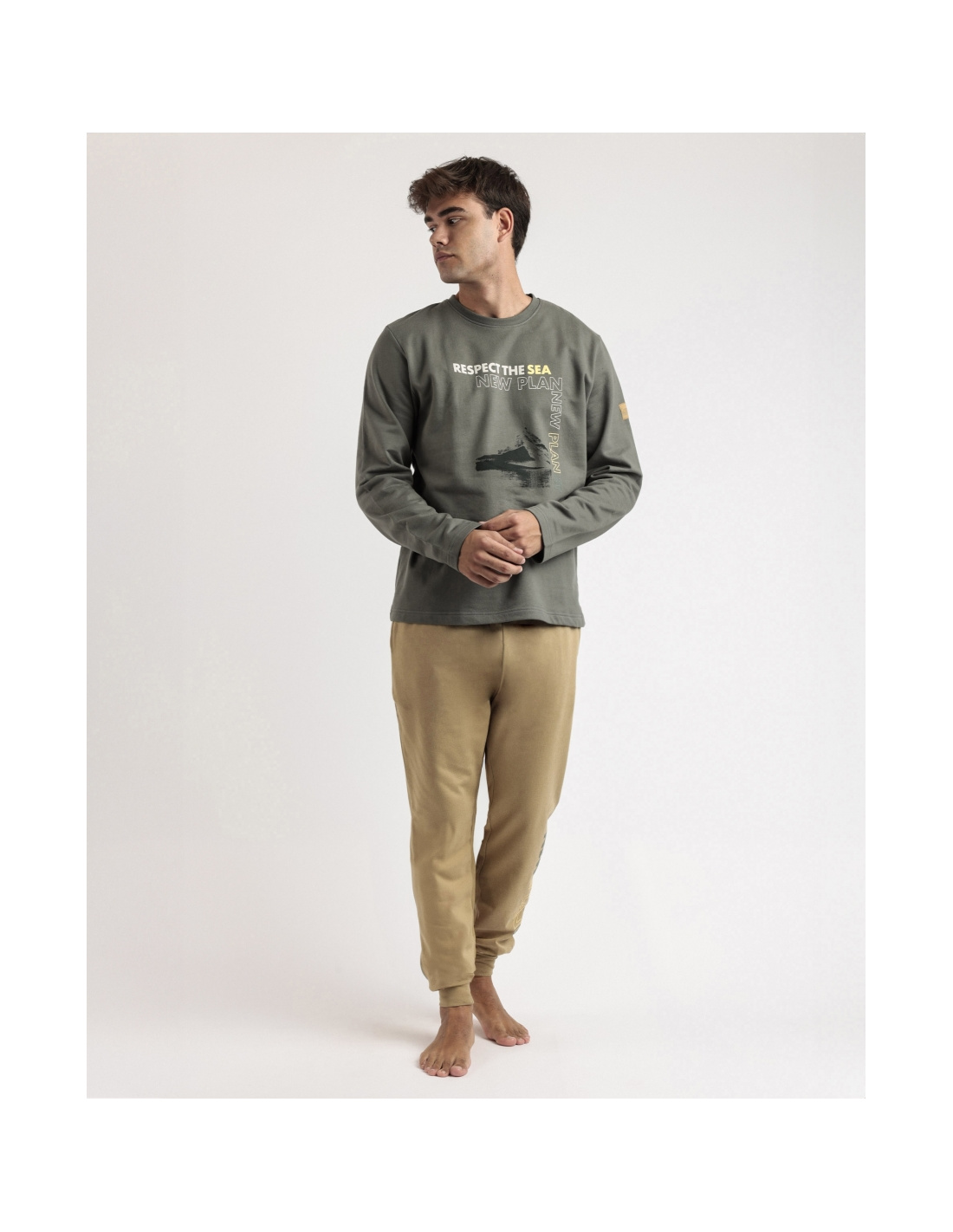 Respect The Sea Long Sleeve Pyjamas for Men KAKI