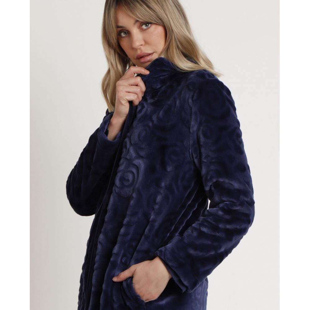 * Long robe, in very warm special corel jaquard fabric, with pockets and in two color combinations: red and navy blue.