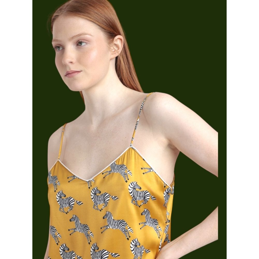 * Ochre printed satin babydoll with adjustable straps, customized by the Luxury brand.