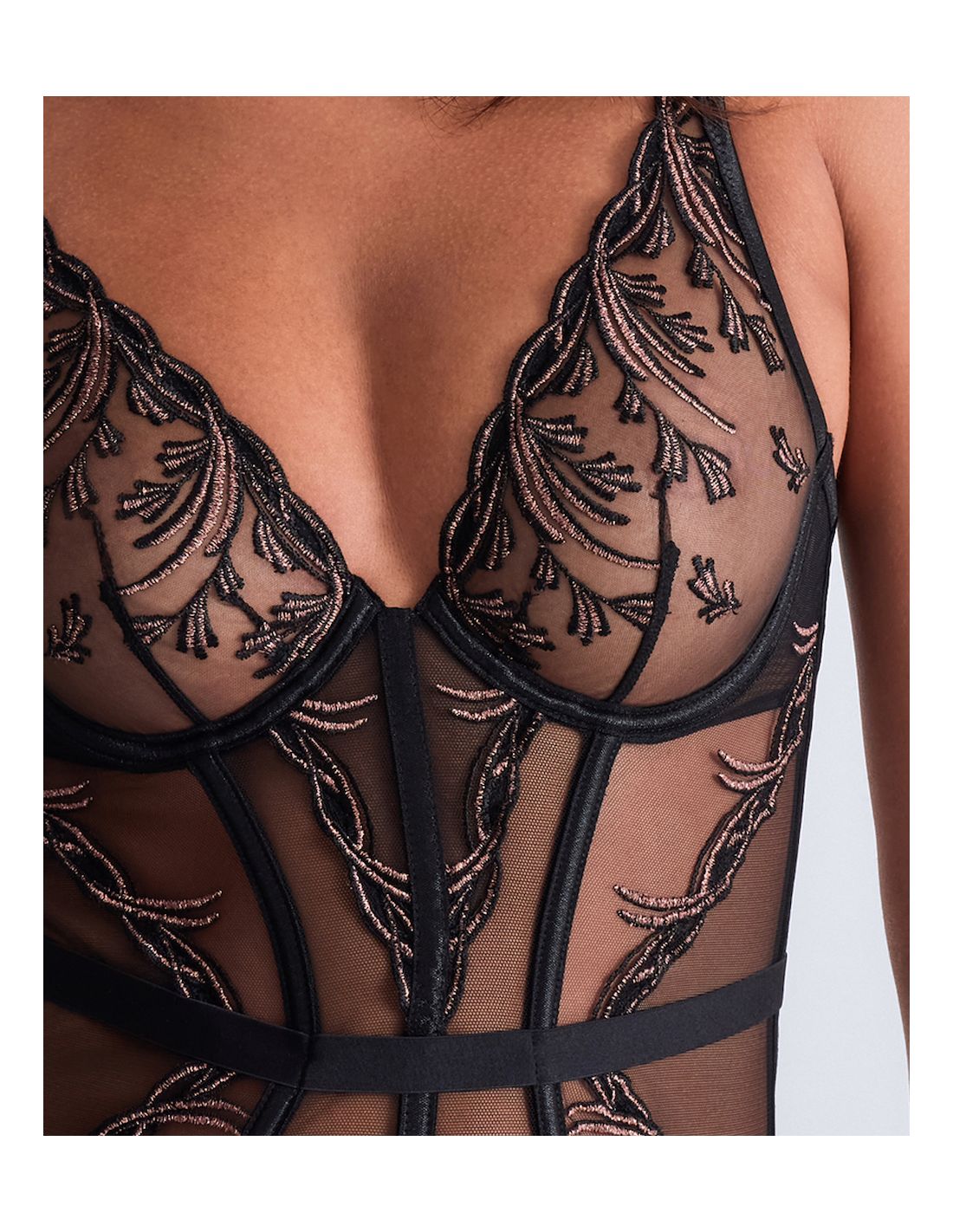 Its embroidery, inspired by floral arabesques, and its subtle play of transparency reveal sensuality with finesse, while refined cuts offer a perfect balance between comfort and sophistication.