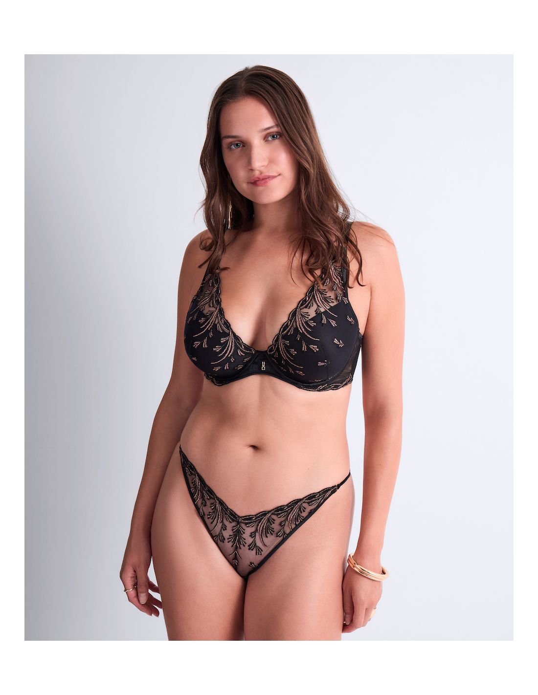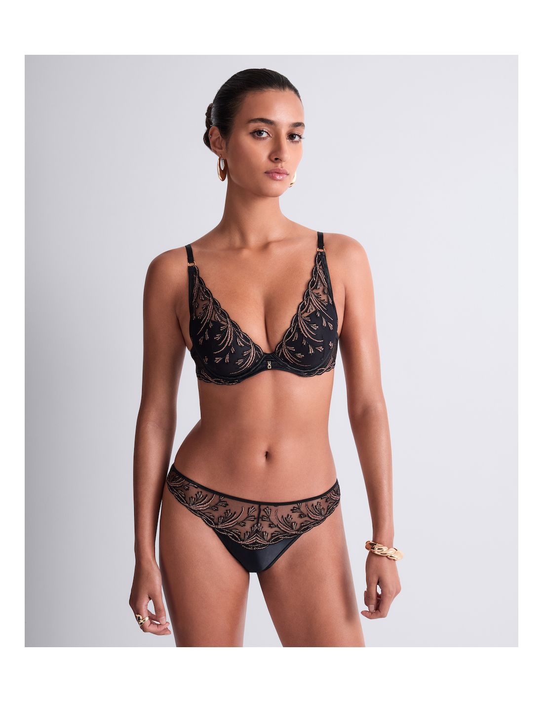 Its embroidery, inspired by floral arabesques, and its subtle play of transparency reveal sensuality with finesse, while refined cuts offer a perfect balance between comfort and sophistication.