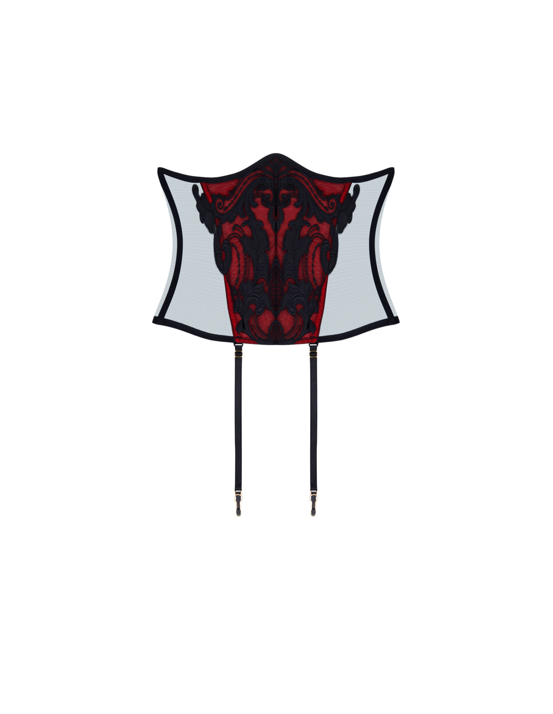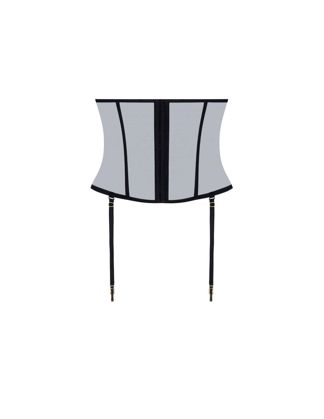 A seductive accessory. Worn around the waist. Slims and shapes the silhouette. Features removable garters.