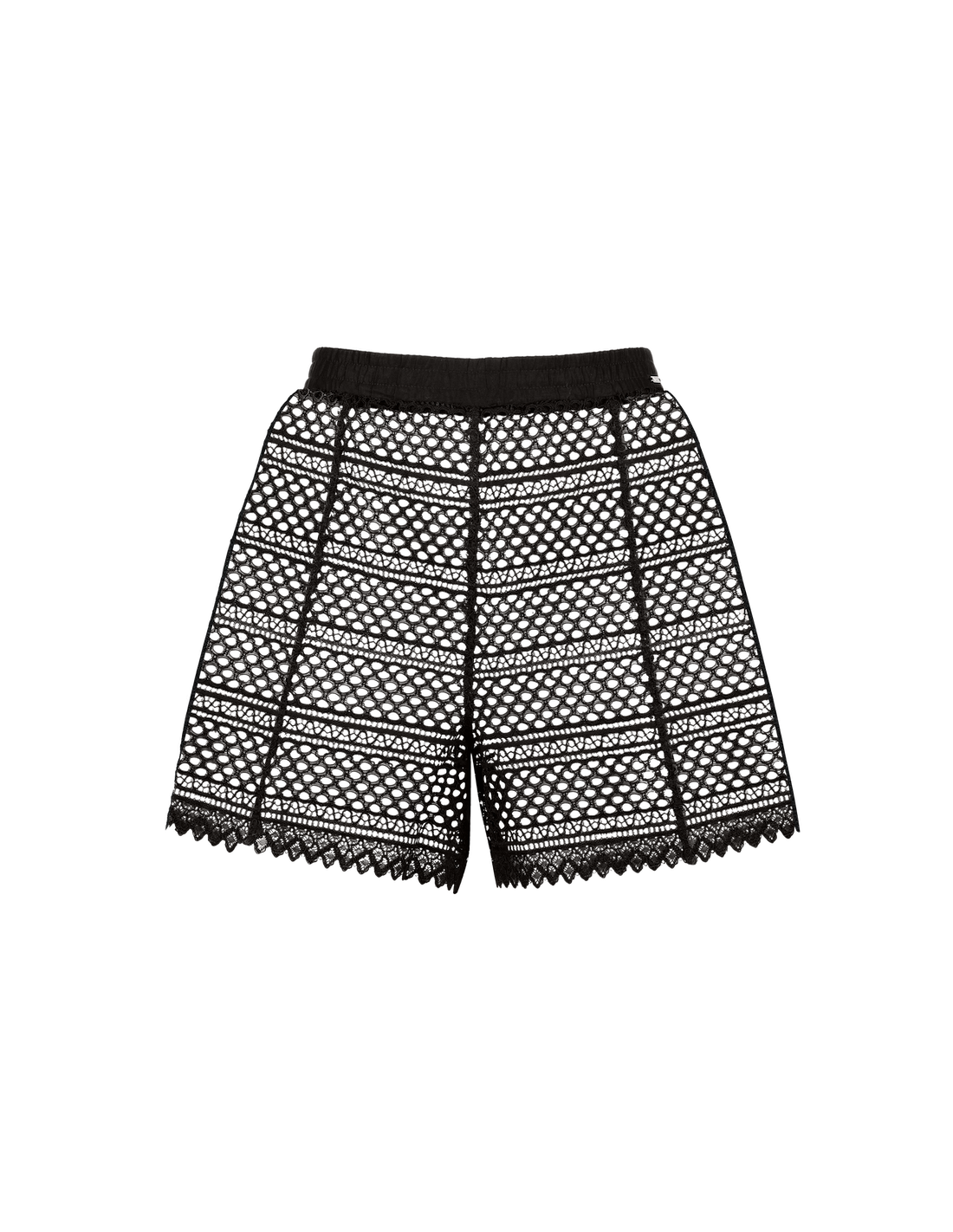 Decidedly sexy, the By The Sea shorts combine elegance and bohemian-chic style in a fluid, comfortable, and lightweight cut with sensual sheer details. At the crossroads of seduction and sophistication, they allow the graphic patterns of their exclusive openwork lace to show off the leg.