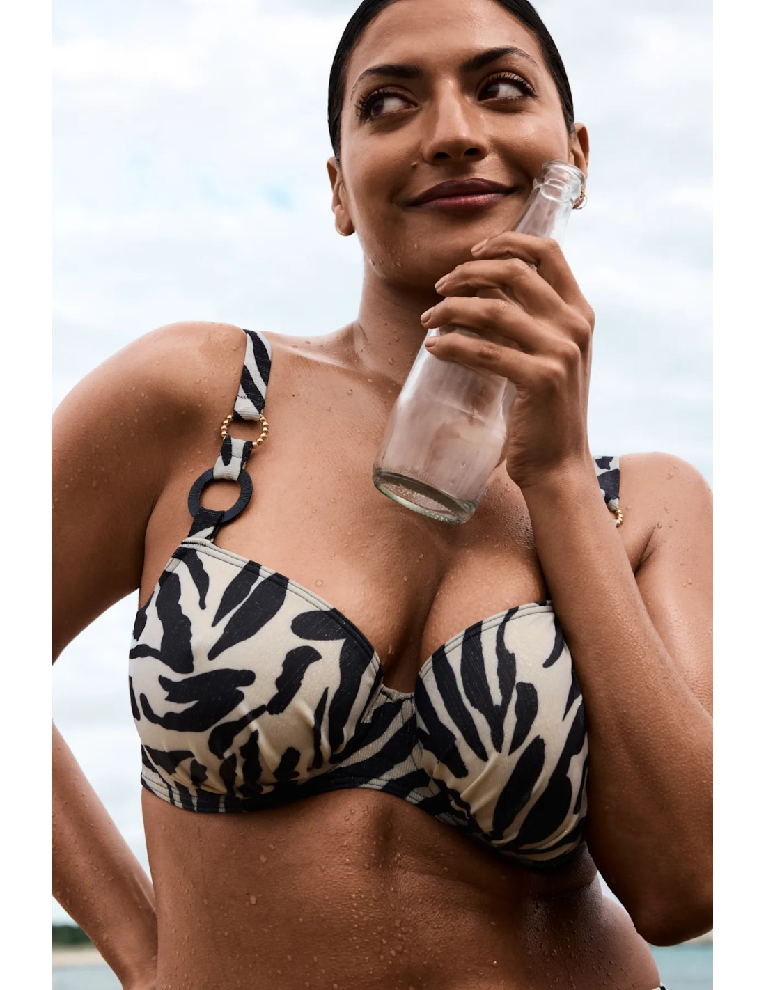 Full-cup top that confidently enhances your bust. Cool print with a glittery look.