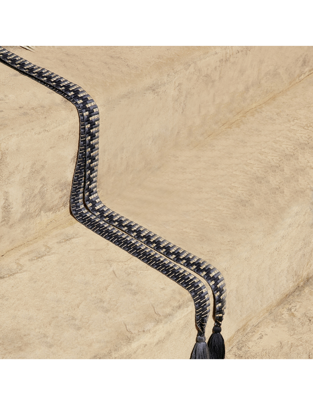The perfect accessory to accompany your summer wardrobe! This belt ties at the waist, is easy to wear and fits most. A pattern in neutral tones and decorated with fringes at the ends, to wrap yourself in a dress or pants.