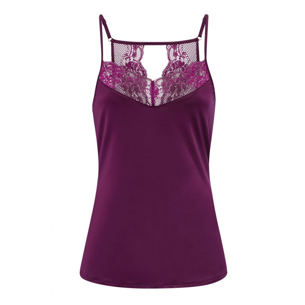 This spaghetti strap top from the HANRO Lovis collection caresses your skin with its particularly soft viscose. It is lightweight and hugs natural curves gently. The straps in the back and the beautiful Jacquardtronic lace in the front and back are the highlights of this model. Whether worn with the kimono from the collection or stylishly combined with a tight skirt, this model represents elegance in its purest form.