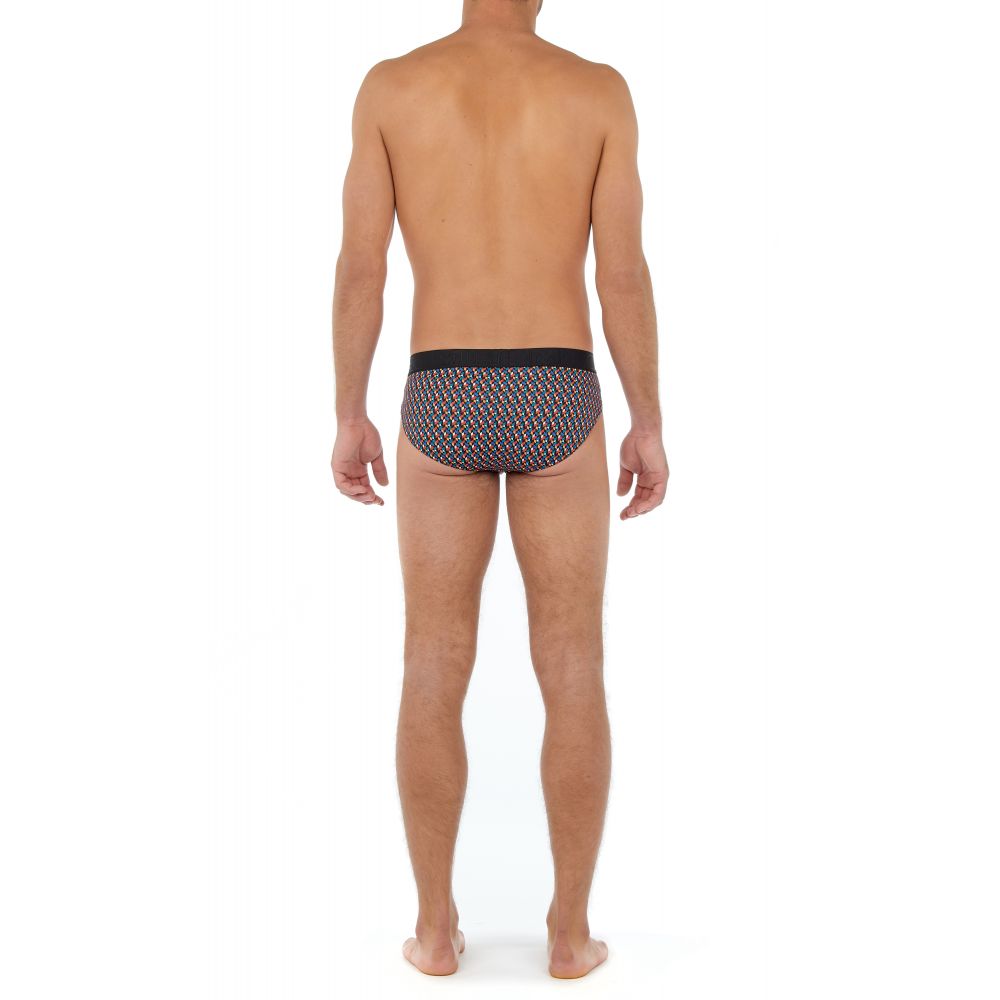 In Stock Hom Underwear Mini Brief HO1, Ralphy, Hom 402694-I0BI HOM 3237260000007 €34.50 HOM UNDERWEAR RALPHY MINI HO1 BRIEFS HORIZONTAL OPENING a mosaic style full of energy, composed of half-moons colored in blue, gray and orange tones. The print is combined with a very bright solid blue. Ultra-soft mini briefs in a blend of natural materials. HO1 horizontal opening characteristic of the brand. Soft microfiber belt,... View