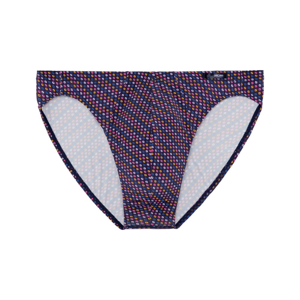 The HAL men's brief is a micro cut brief, made of polyamide elastane. Its geometric print of micro-squares is colored in orange, blue, pink, etc.