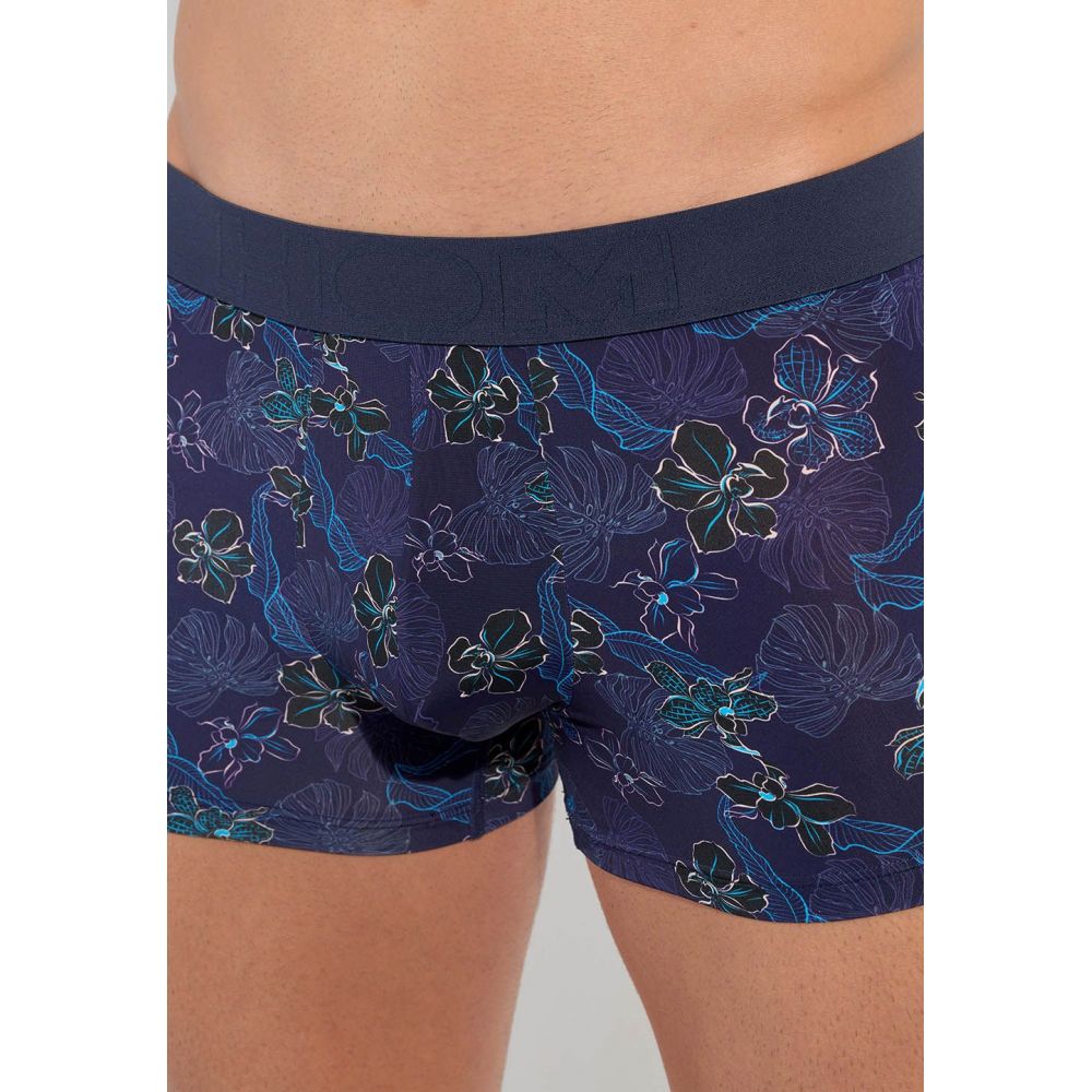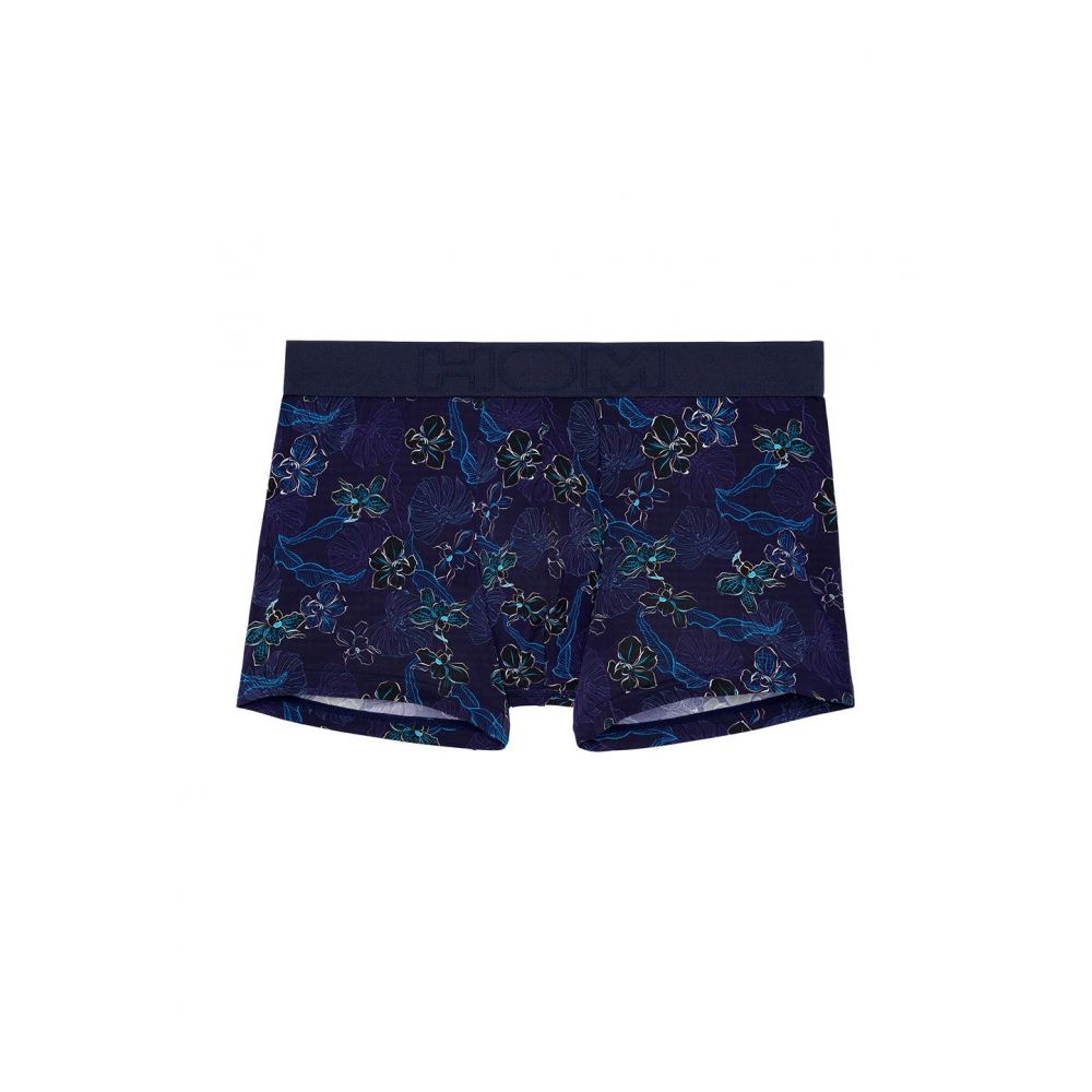 The MALDIVES boxer is a classic cut men's boxer, made of polyamide elastane fabric. This predominantly dark blue underwear is illuminated by exotic flower designs, with fine trains and turquoise, pale pink colors.
