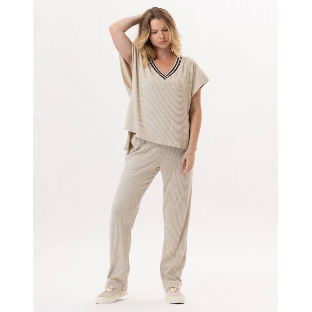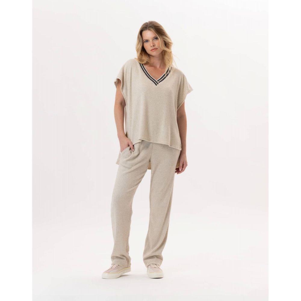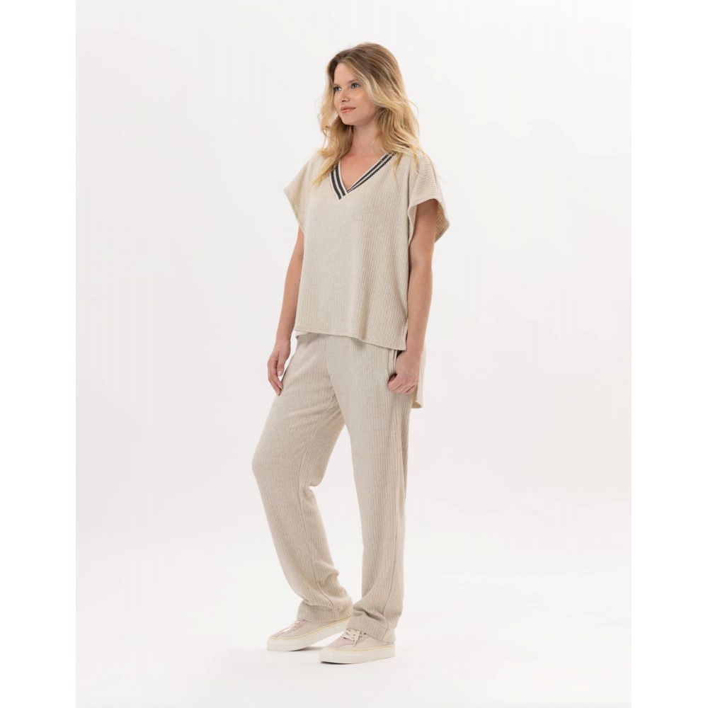 Wear our ESMEE 831 sleeveless sweater at home or outside, both options are available to you! It lends itself perfectly to layering with a white shirt and can be combined with your favorite pants; but also with the ESMEE 880 pants to create a total look outfit in ribbed knit that is as cozy as it is trendy.