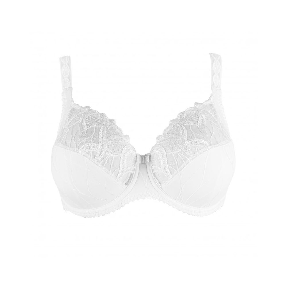 The full-cup bra from the Julia line includes embroidery with flamboyant vertical curves, evoking the curves of the female body.