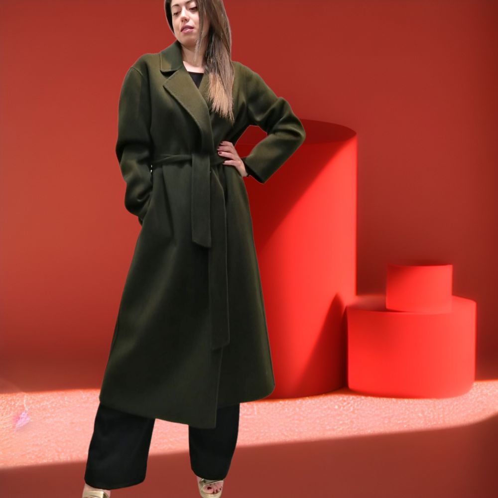 This long double-breasted coat in Bronze khaki color with its timeless charm will be your essential partner in your wardrobe all winter long.