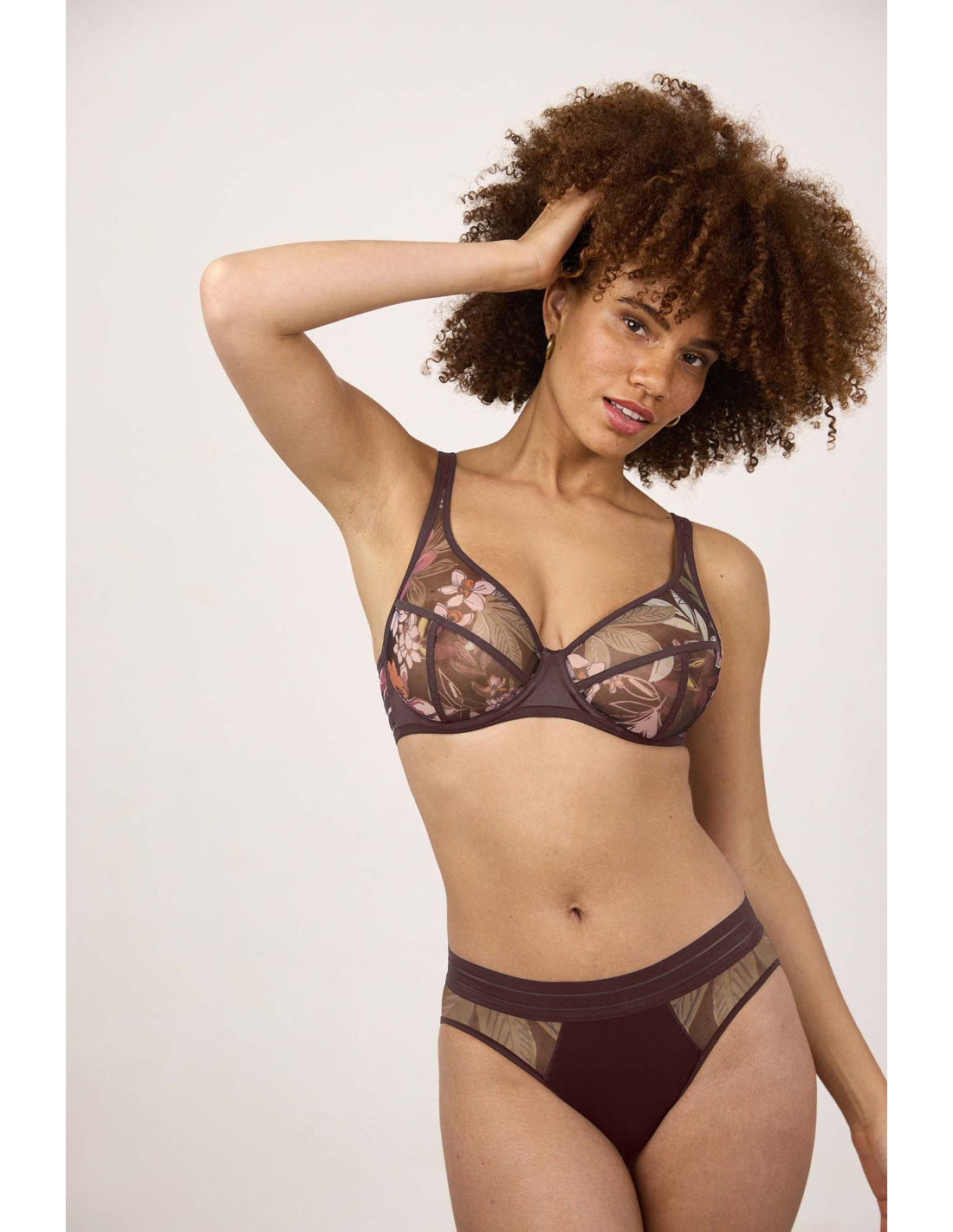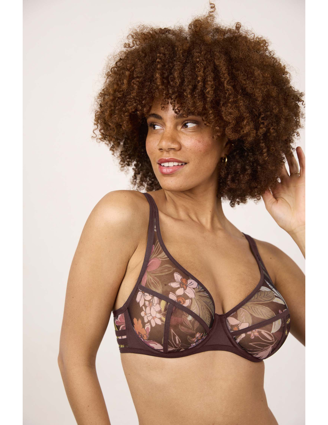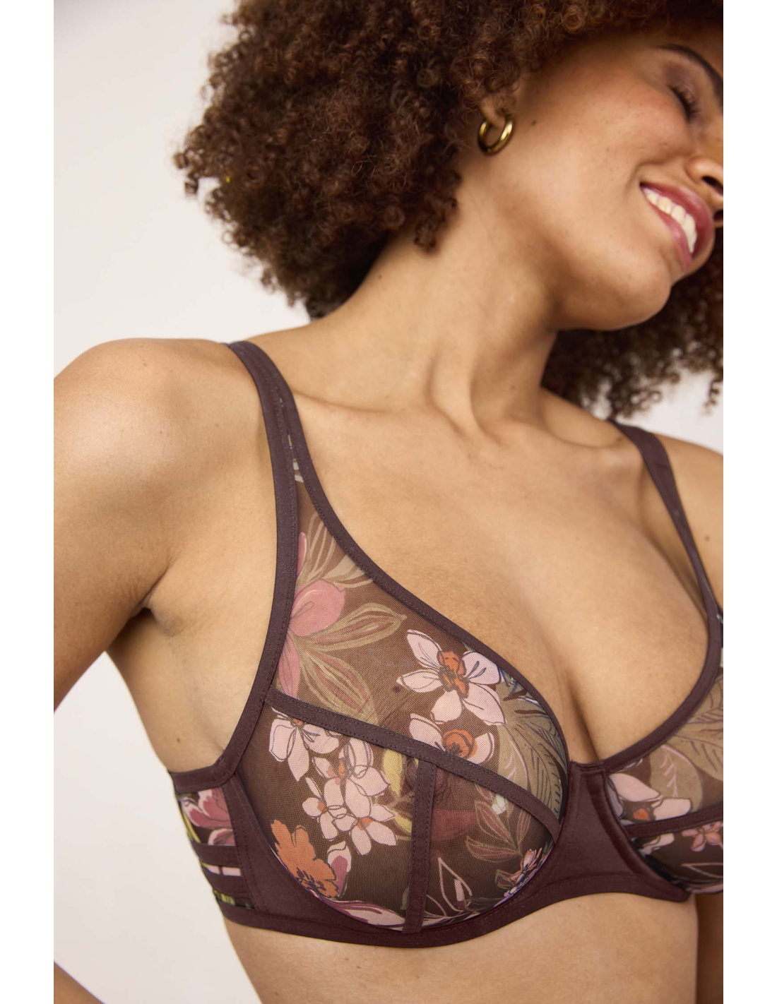 An underwired bra in a sporty-chic style with an abstract floral print.