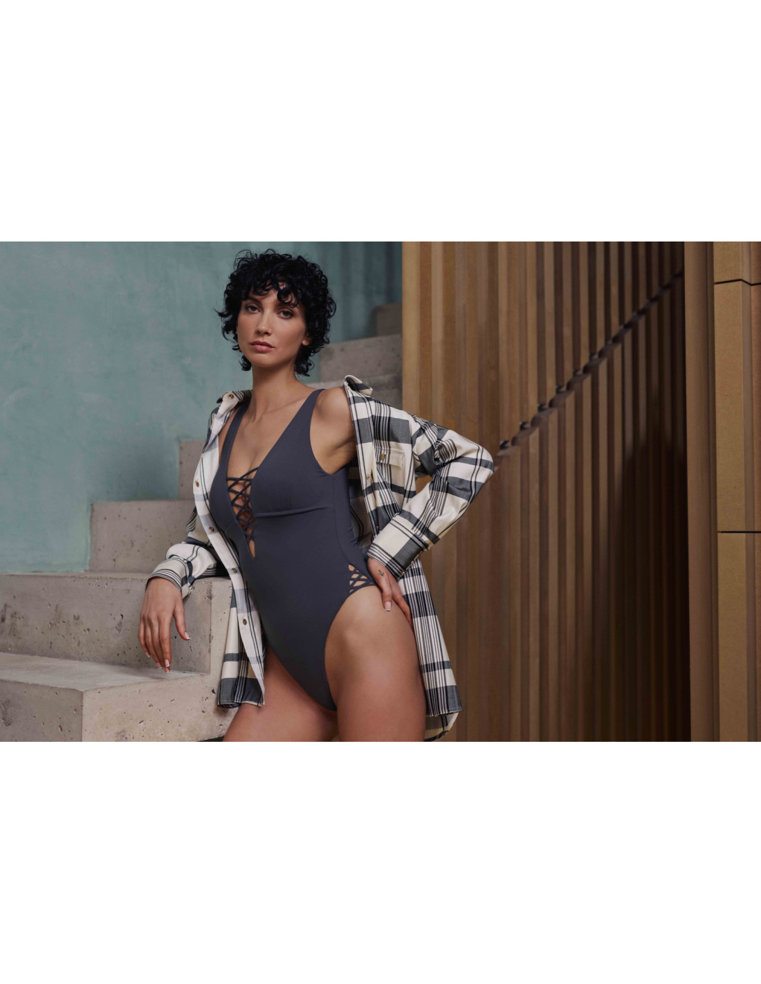 The Brigitte shirt stands out as a statement piece in any wardrobe with its bright tartan print. Its harmonious shades of beige, gray, and black create a look that's both modern and warm. It fastens with snap buttons at the front, while its chest pockets and structured cuffs create a bold silhouette.
