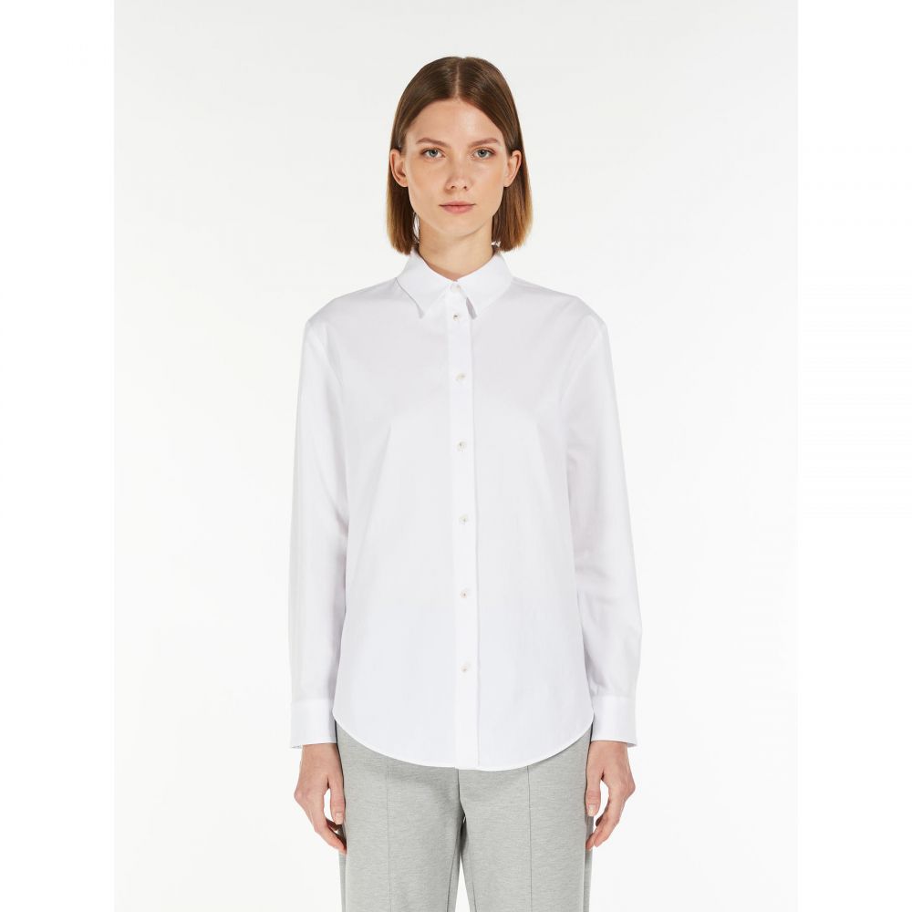 Stretch cotton poplin shirt with long sleeves and visible buttoning.