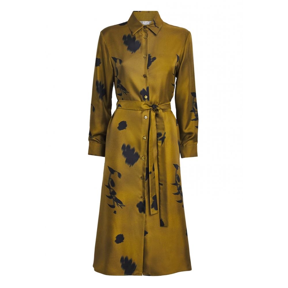 A Jadi shirt dress in a Japanese print style with a botanical print on satin silk, creating a blend of timelessness and fantasy.