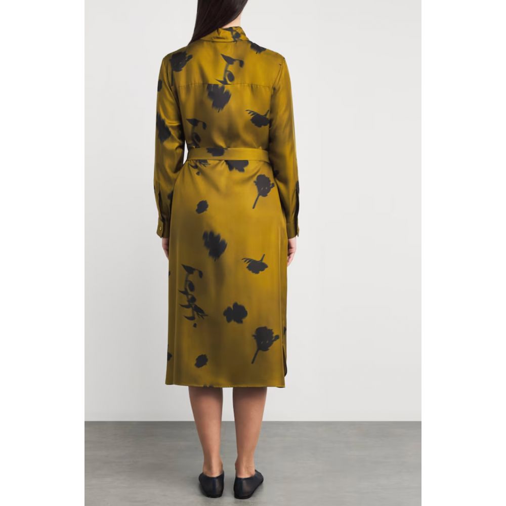 Jadi midi-length shirt dress in green printed silk