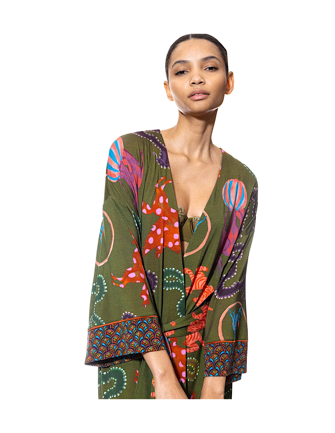 The mey kimono in Pineforest color from the Love Circus series is an absolute must-have! Thanks to its high modal content (94%), the kimono has a smooth surface with a silky shine. At mey, we consistently invest in top-notch quality and use our expertise in underwear design to ensure the perfect fit.
