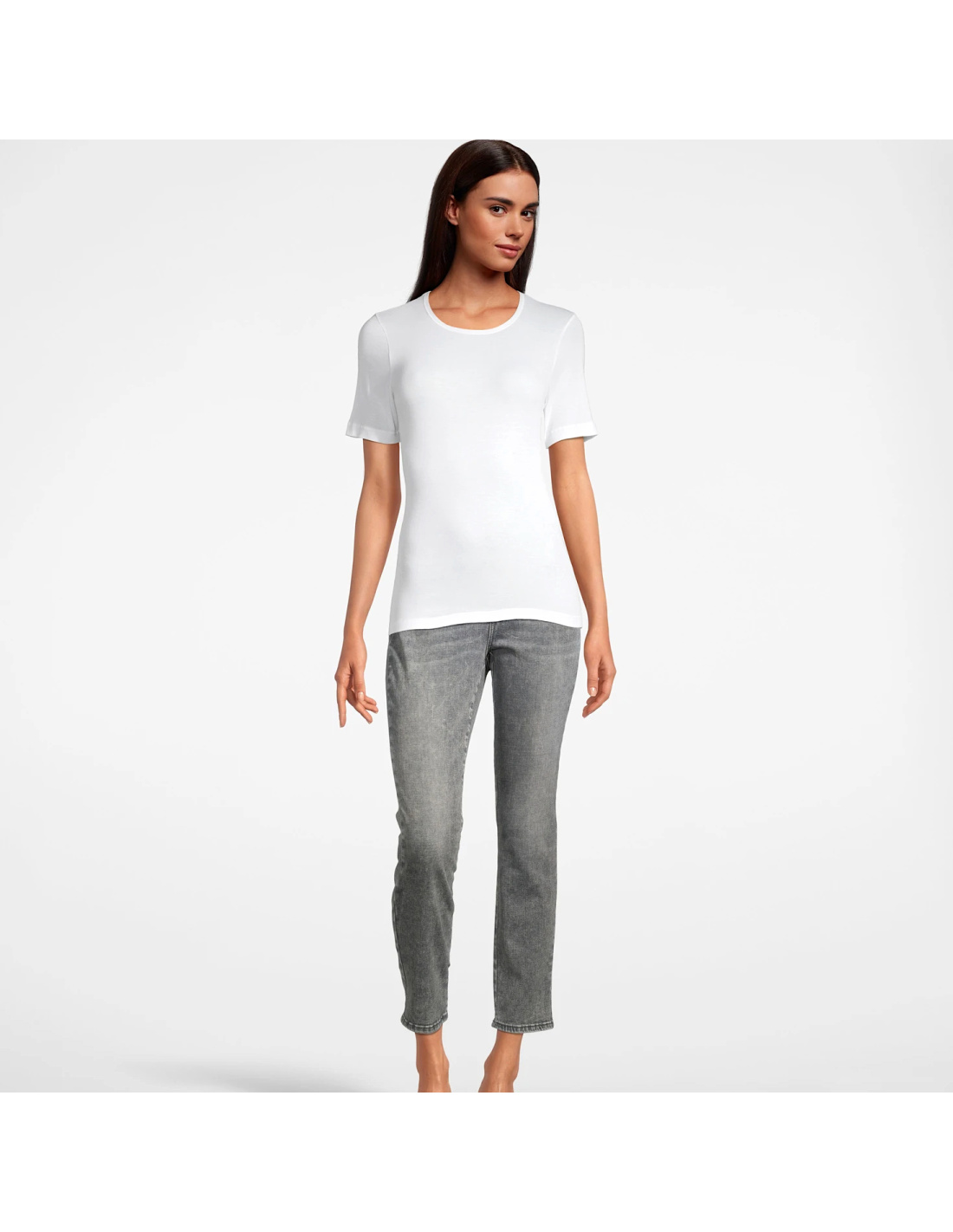 T-shirt in pure Egyptian cotton Makò, flat knit for a soft and pleasant result on the skin, particularly comfortable and ideal for allowing the natural perspiration of the skin. Refined round neckline and simple piping to highlight your femininity for the most softness and comfort on the skin.