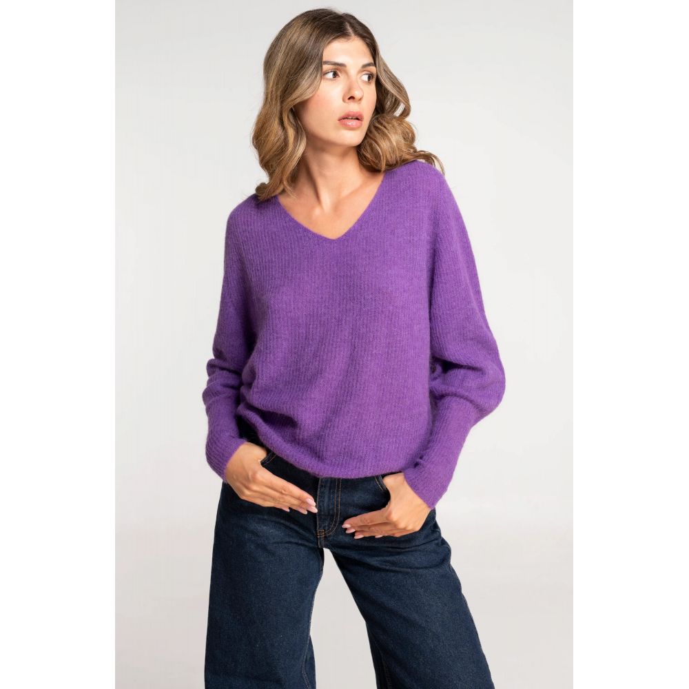 V-neck sweater in baby alpaca and extra fine merino wool characterized by a very soft and fine manufacturing. The combination of these two fibers creates a comfortable, warm and cozy sweater that wraps the body. A balloon sleeve sweater with a regular fit.