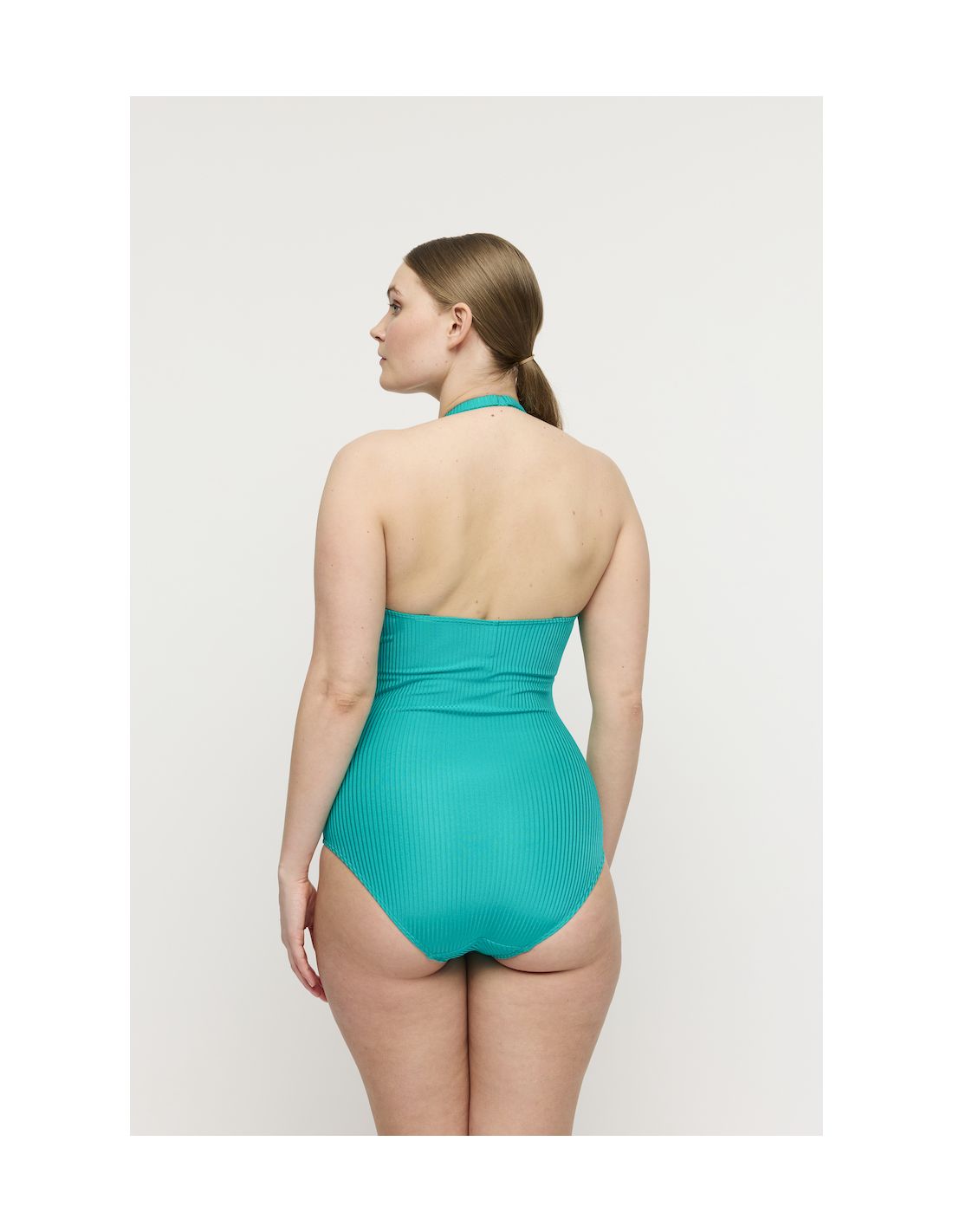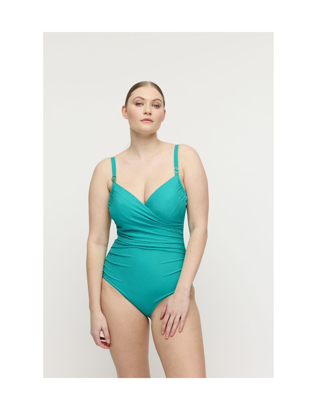 A comfortable, shaping swimsuit with full cups for extra support. Trendy and flattering in green.