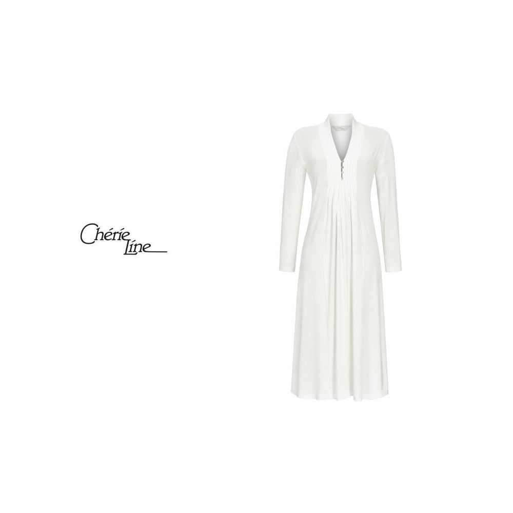 This pretty nightgown has a sophisticated piped finish at the neckline and on the front with a small button placket. The female model impresses with its simple elegance. The softly falling fabric flatters the figure. The material ensures very good wearing comfort, offers dimensional stability and long-lasting color brilliance.