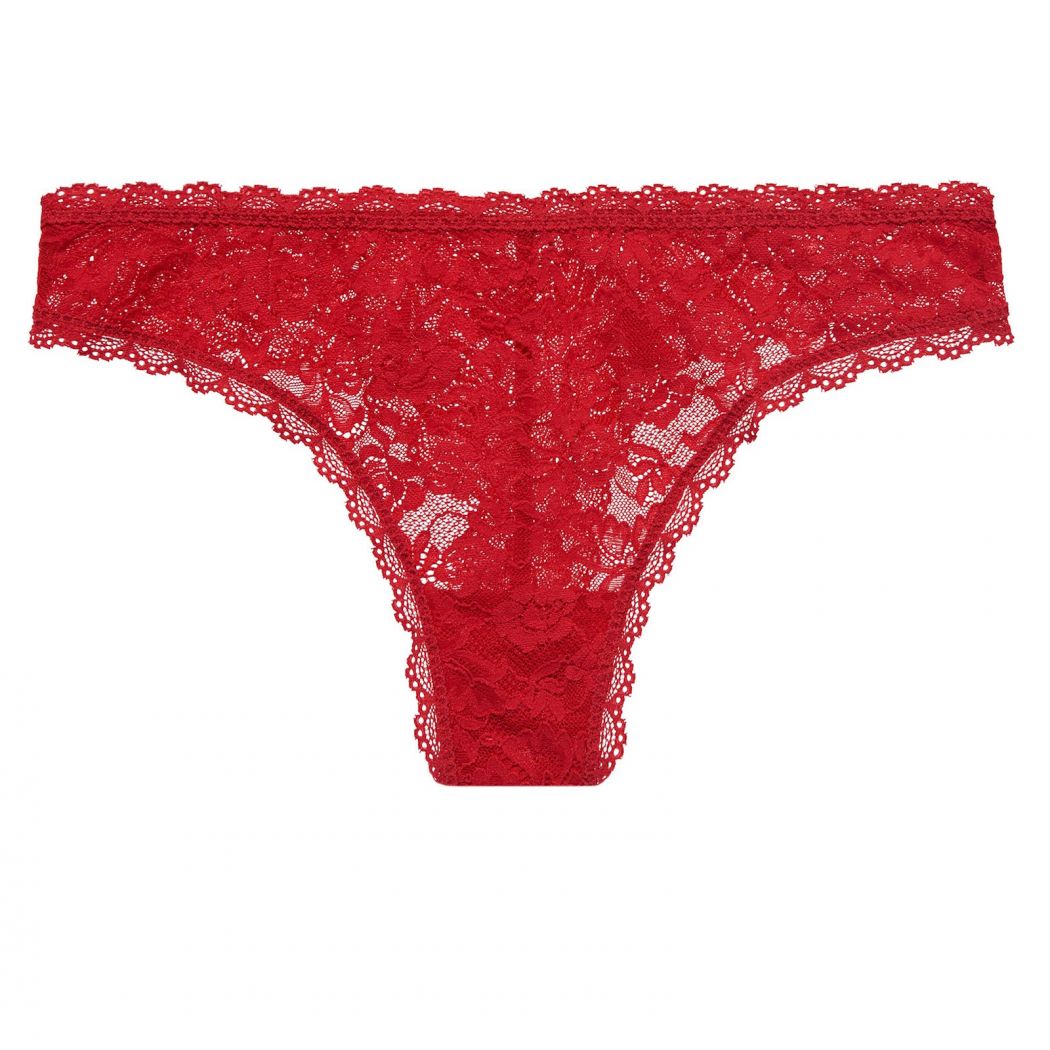 The tanga brief unveils its classic shape like a seductive invitation. The piece is edged with lace trims that create a refine finish, adorning the curves with delicate lace. Inspired by the rose d Ispahan, the motif melts away at the back where the fabric is cut high across the buttocks.