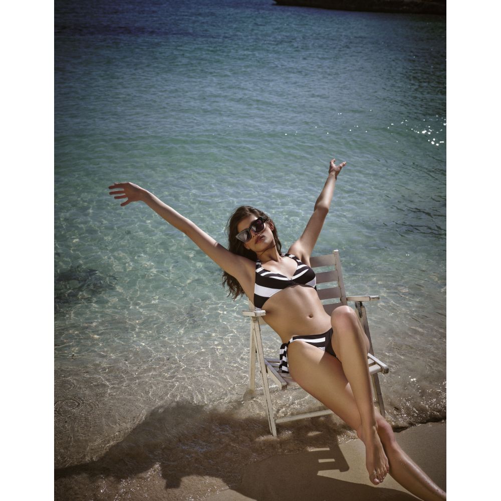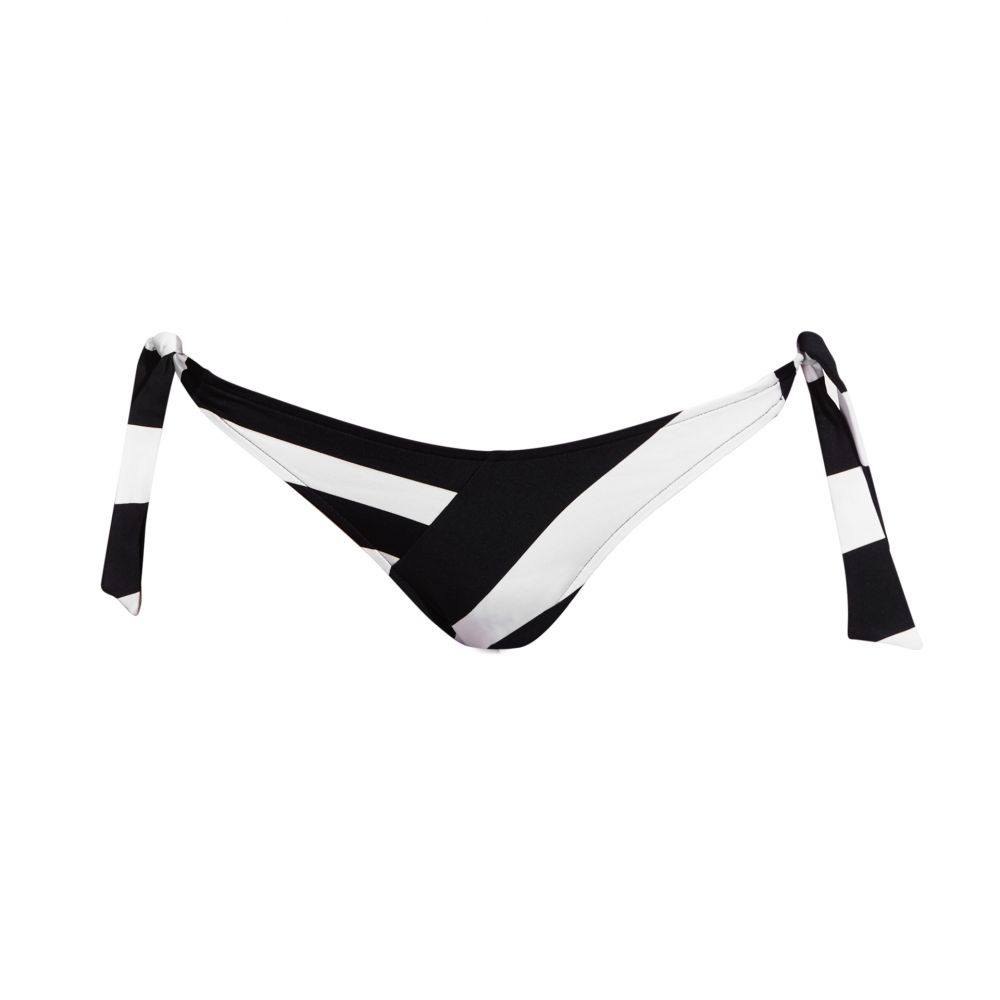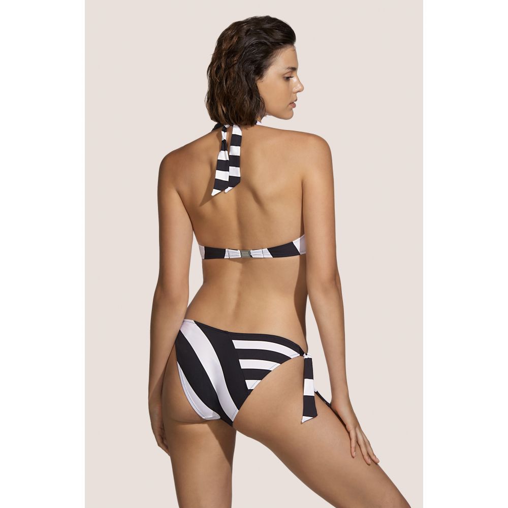 Slightly brief-shaped panties, set of seams and combination of the two stripes existing in the collection. Side attachment in the form of slightly wider links made with the same set/combination of stripes. Unique color proposition for this collection, Domino... as its name suggests, it is available in black and white.