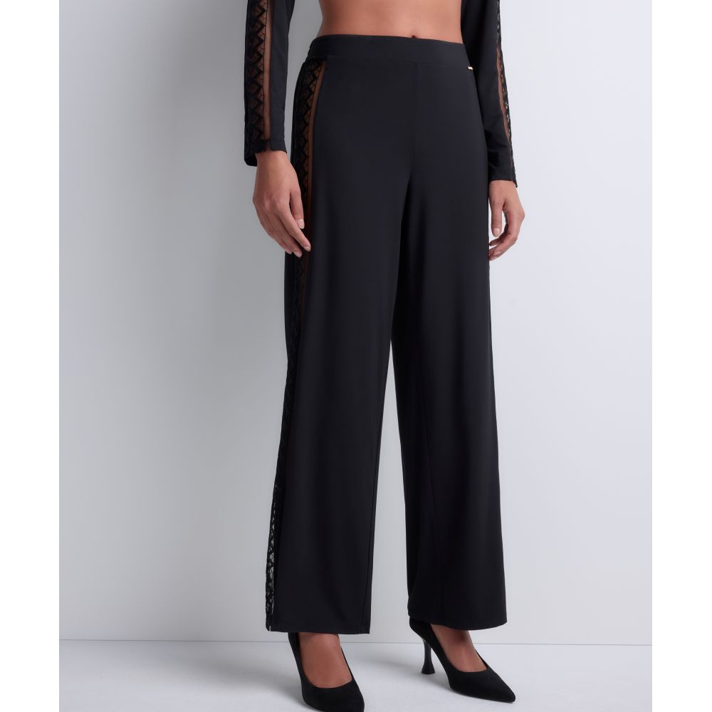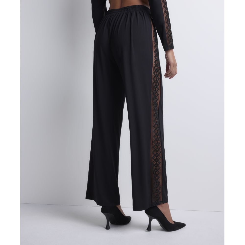 Offering a relaxed look, the Sweet Obsession pants feature a soft, flowing knit that naturally follows the body's movements. On the sides, sheer panels offer a charming and seductive effect, subtly revealing the skin through the graphic interlacing of the embroidery.