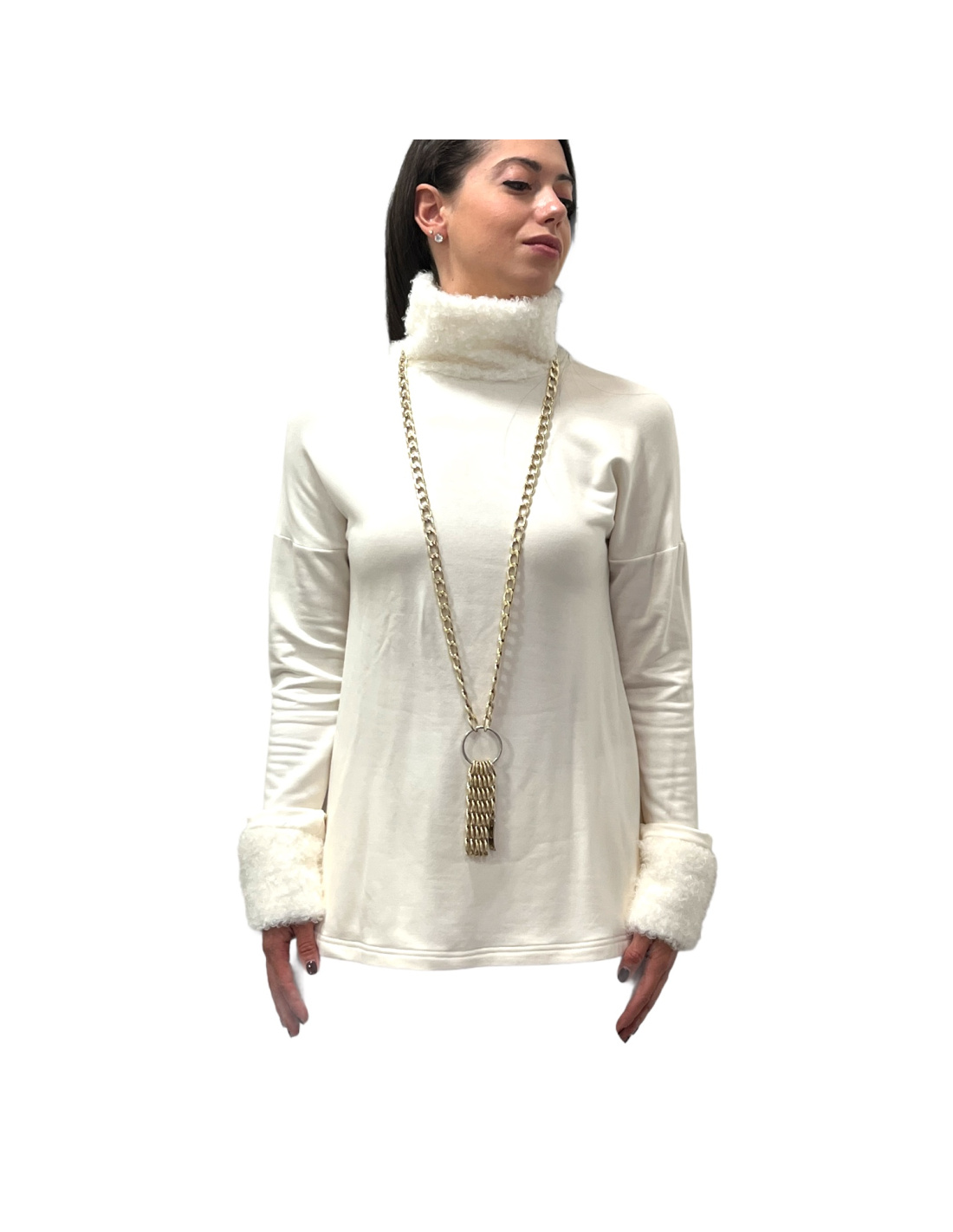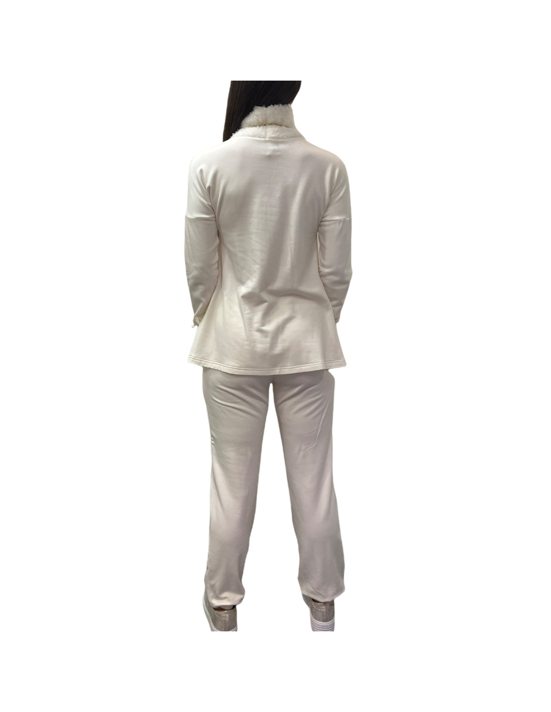 Tsarine fleece set made up of a high-neck sweater with buckles and matching sleeves, straight pants with front patch pockets, elasticated at the waist + drawstring, Tsarine series, Valery Prestige Homewear collection.