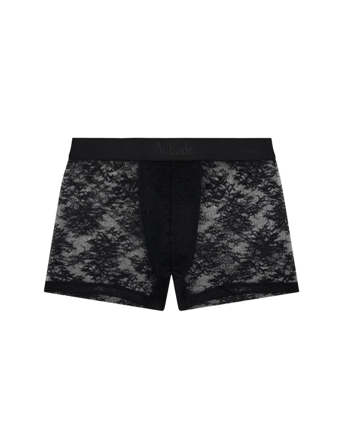 The Dance Black boxer shorts celebrate a playful seduction, designed for an Aubade couple who enjoys both seducing and being charmed. Inspired by the iconic "Danse des Sens" floral lace, they reinterpret this emblematic motif in a resolutely contemporary masculine version. Crafted from fine, flat, and comfortable Italian lace, they subtly play with transparency to reveal a confident sensuality. Their clean design hugs the body with precision and modernity, creating a refined dialogue with the "Danse des Sens" lingerie for a captivating mix and match. The tone-on-tone black "Aubade" logo waistband structures the silhouette with understated elegance, while the front pouch lined in modal cotton ensures absolute comfort every day.