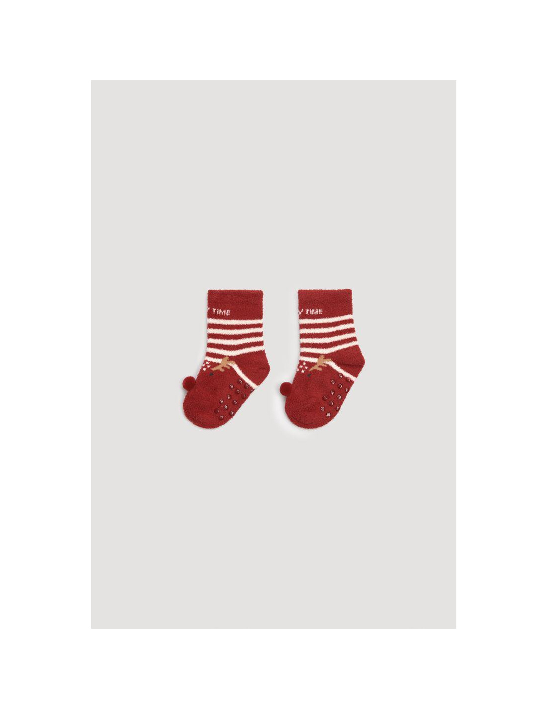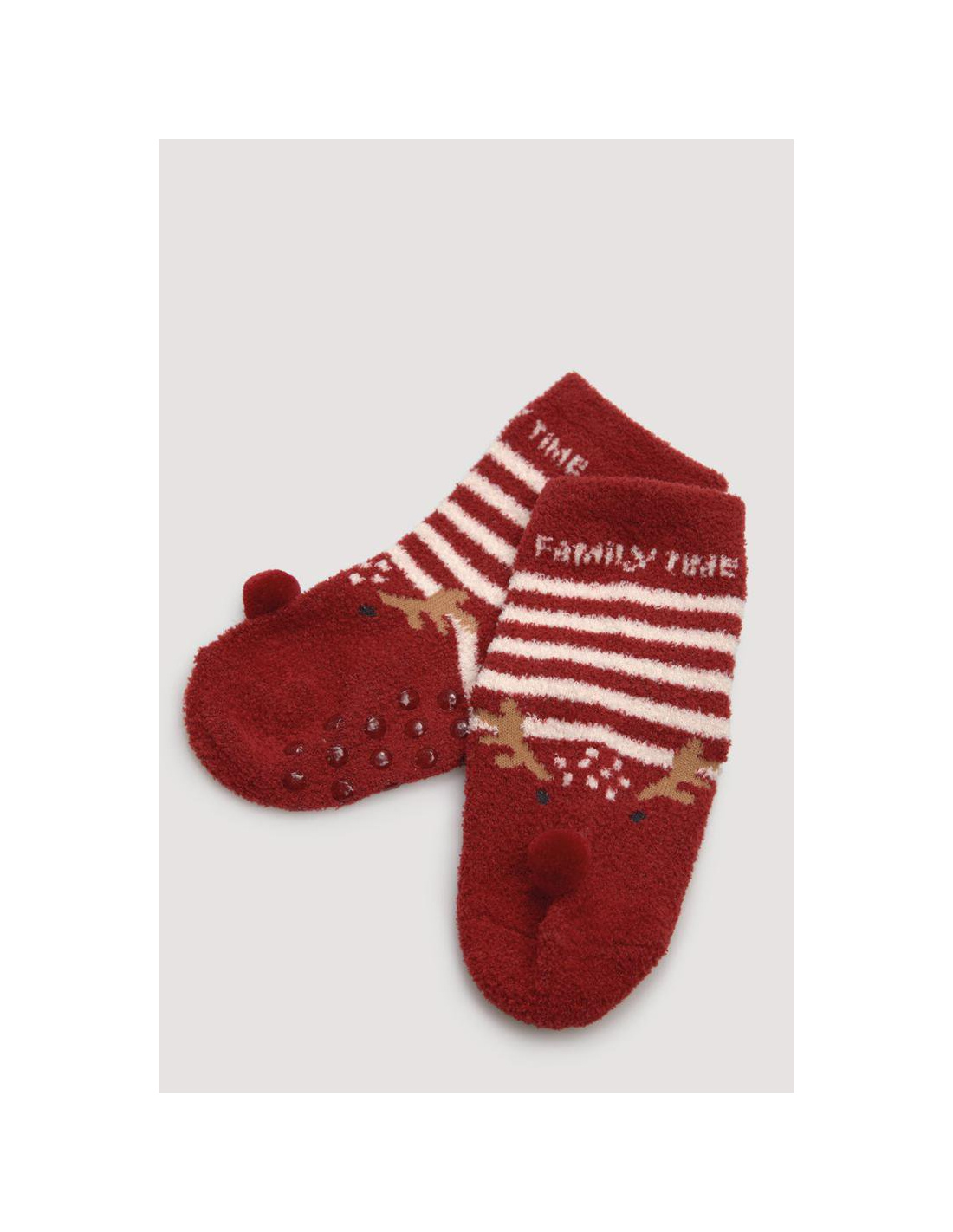 It's Christmas time with these non-slip socks for kids. This adorable reindeer with a pompom on the nose has an extra soft touch and a special anti-pressure elastic for more comfort. Mini me, to go with the whole family. Give the Christmas present. It's time for the family!