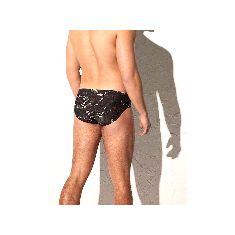 Swimwear collection. Men's briefs. Tropical leaf print.