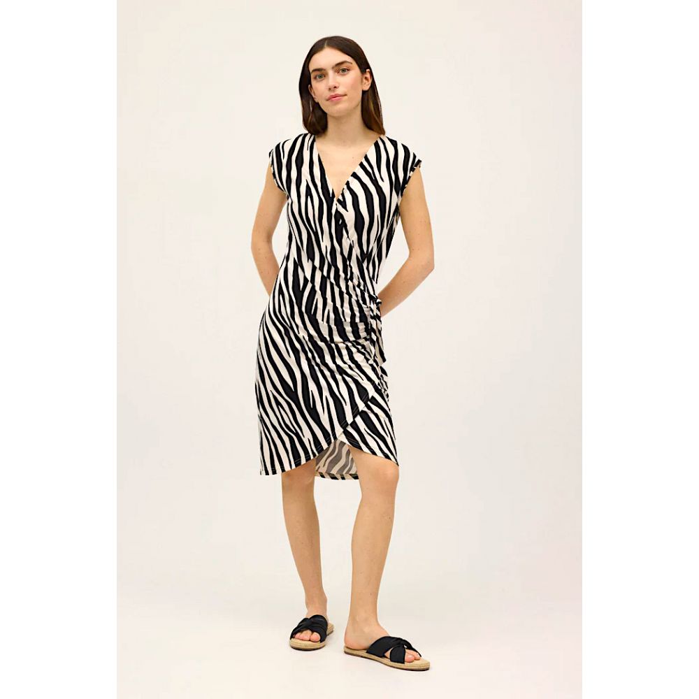 Zebra print midi dress with side slit. V-neck wrap dress. Cool fabric for summer comfort. Pair it with a matching bikini from the collection.