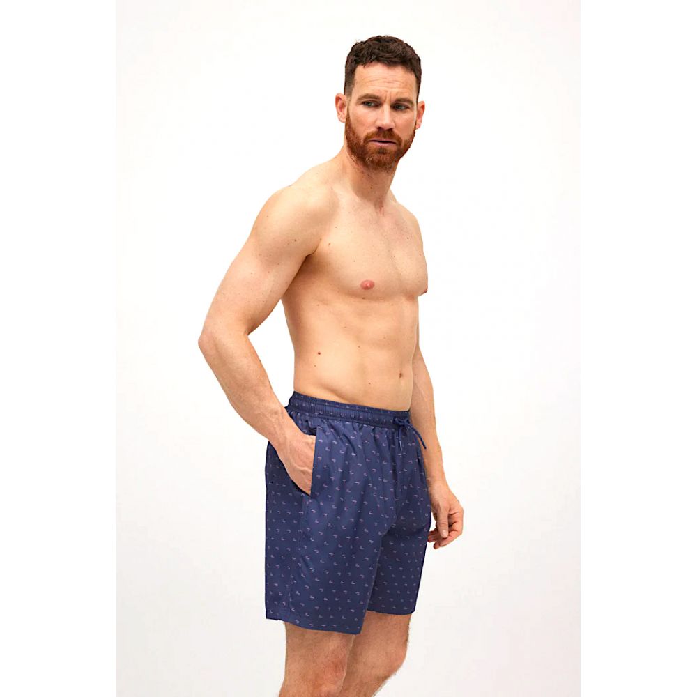 Men's longline swimsuit. Lightweight, quick-drying fabric. Boat print.