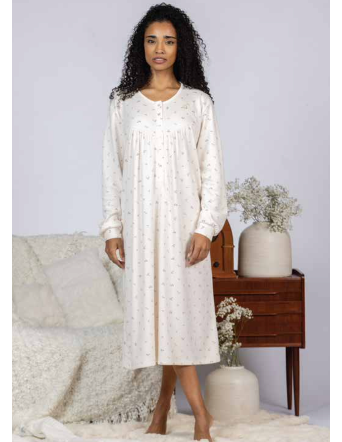 Chemise de nuit confortable en coton chaud et douillé avec un Interlock Intérieur brossé.