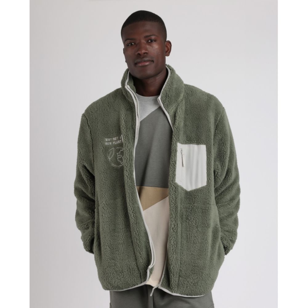 Save Tree Veste zippée chaude à manches longues pour hommes KAKI