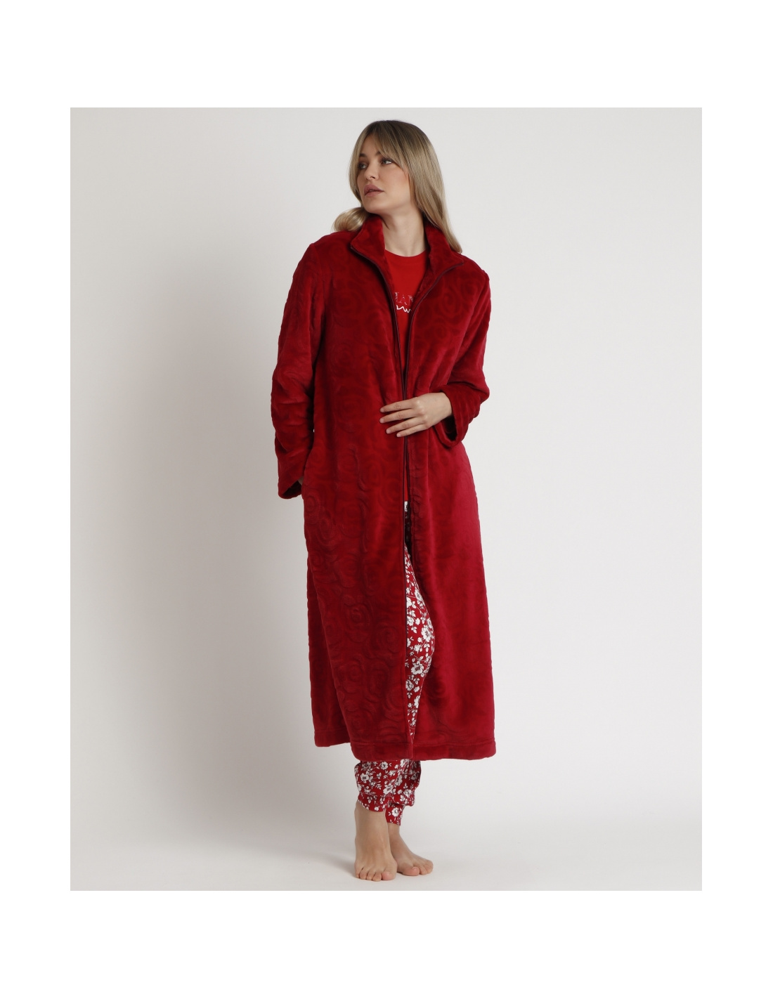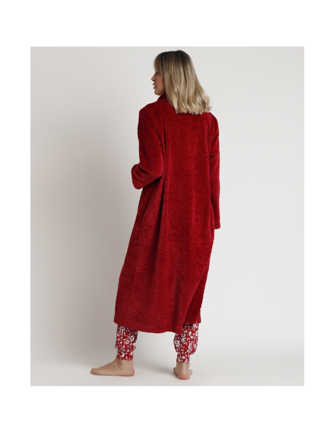 * Robe longue, en tissu jaquard corel spécial très chaud, avec poches et en deux combinaisons de couleurs : rouge et bleu marine.
