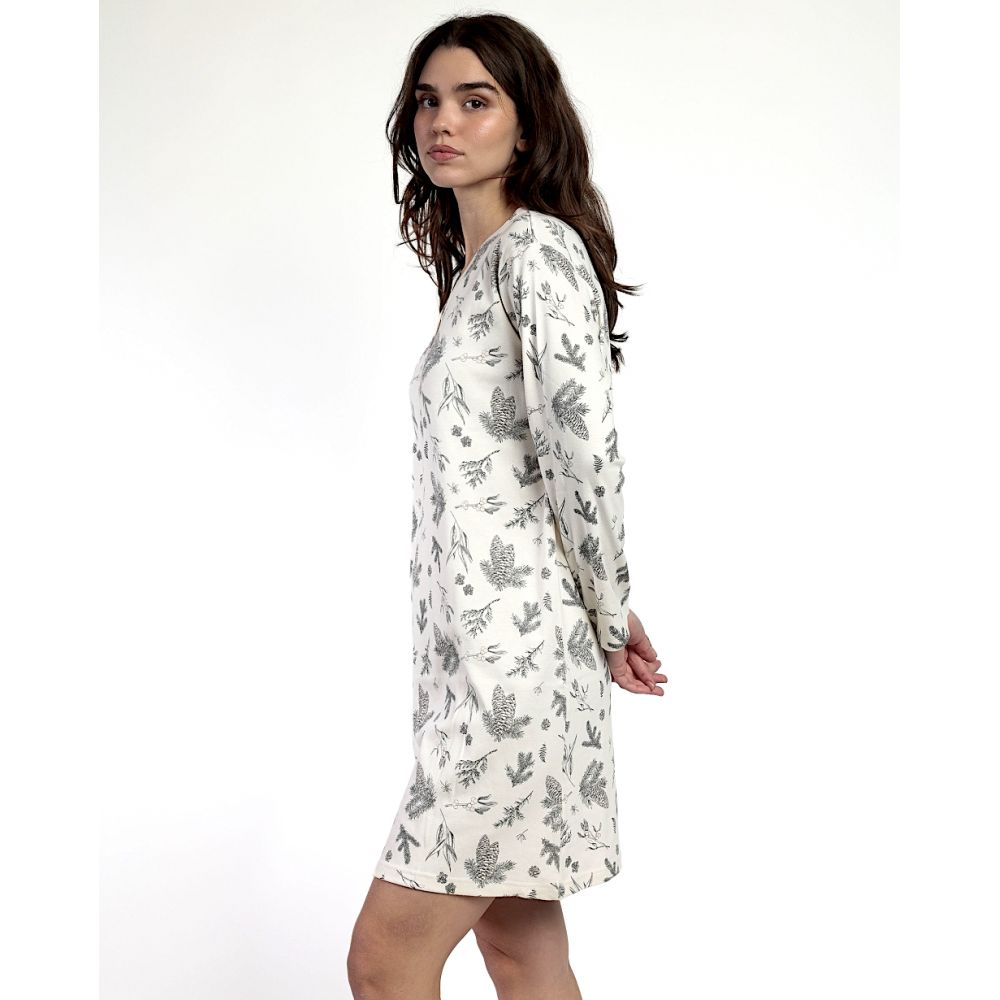 Chemise de nuit à manches longues AD- HOME pour femme, motif bois d'hiver, gris