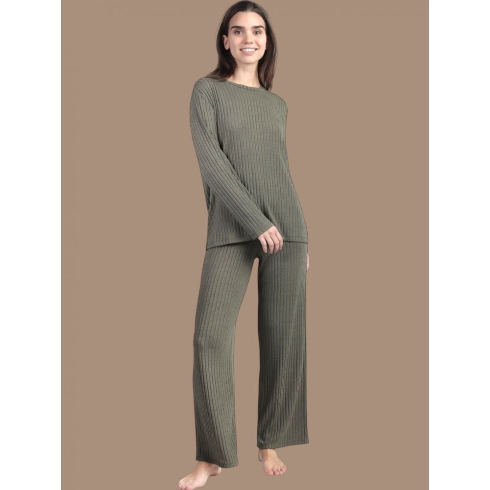* Pyjama en maille côtelée à manches longues, col rond et pantalon long, disponible en coloris : olive