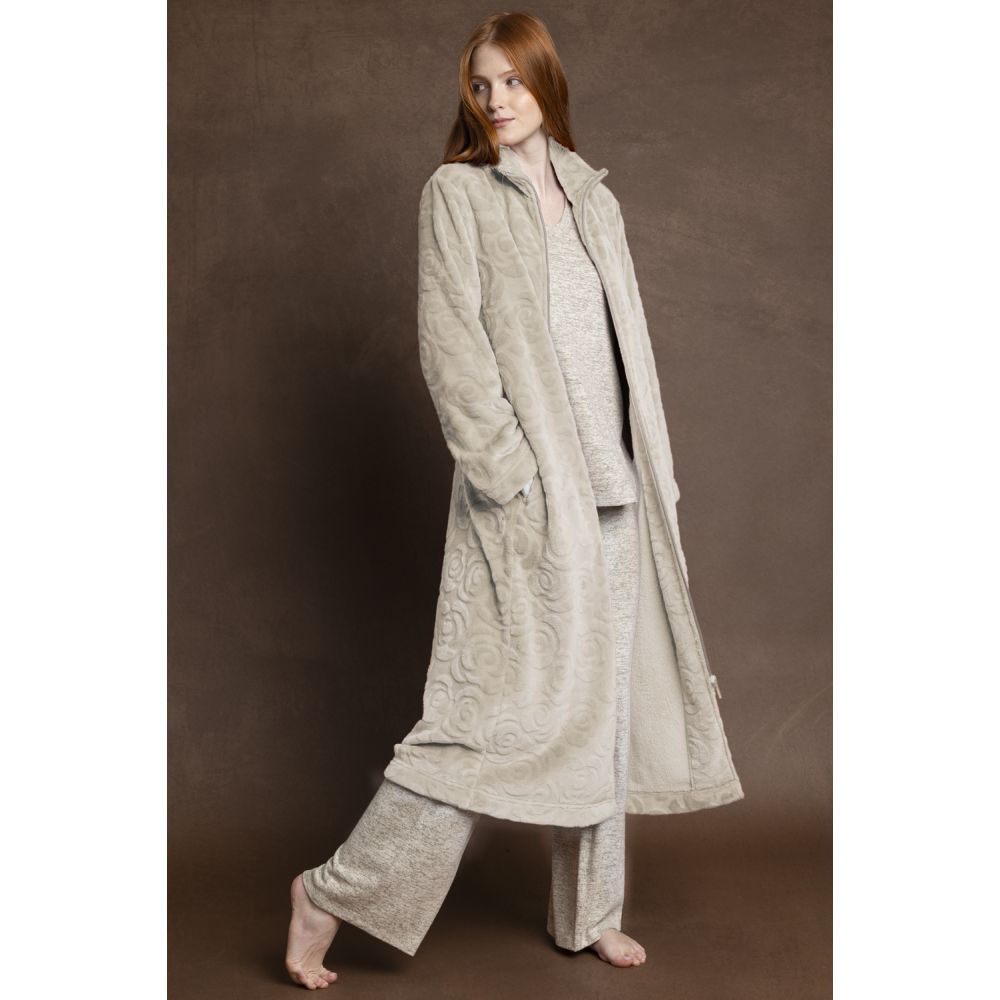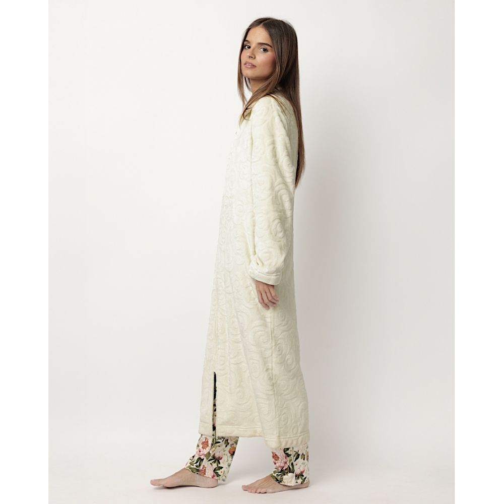 * Peignoir long confectionné dans un tissu jacquard Corel spécial, très chaud, avec poches et disponible en deux autre coloris : rouge et marine.