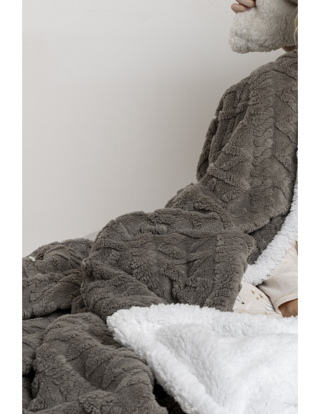 * Couverture double face avec différentes textures : une couverture jacquard Corel plus douce et une plus chaude, en polaire shearling.