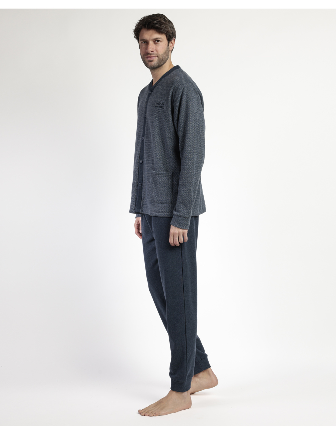 Pyjama homme manches longues ouverture complète par boutonnage