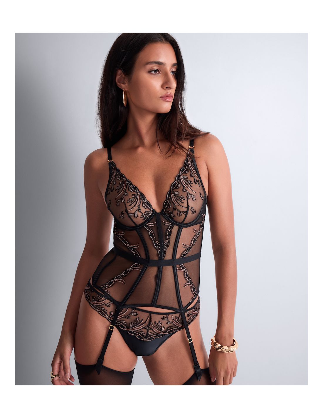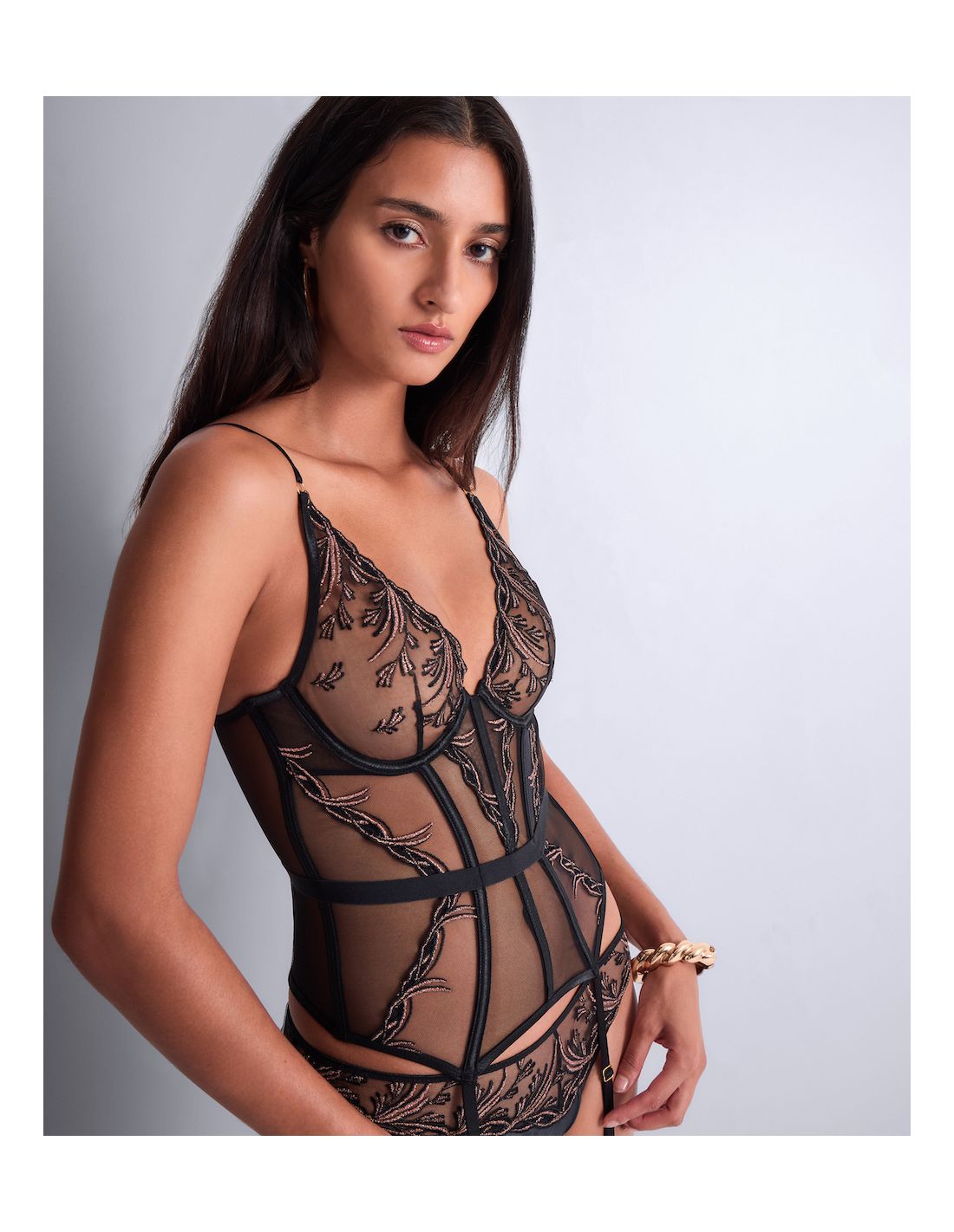 Sa broderie inspirée des arabesques végétales et son jeu subtil de transparence révèlent la sensualité avec finesse, tandis que des coupes raffinées offrent un équilibre parfait entre confort et sophistication.