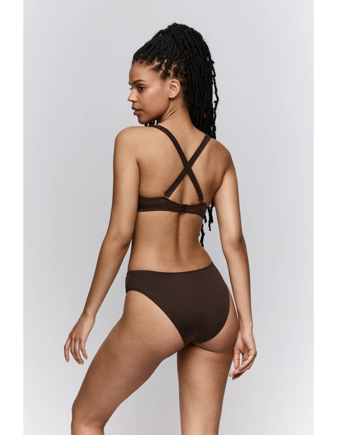 Conçu pour attirer tous les regards— sous le soleil ou sous les projecteurs. Disponible en 3 styles audacieux de hauts et bas pour s’adapter à chaque humeur, forme et moment. Fabriqué en maille lurex italienne, certains ornés d’une chaîne dorée pour une touche de sophistication. Polyvalence à son meilleur : portez le tee- shirt triangle comme un haut ou un tankini ; la robe ? À vous de décider.