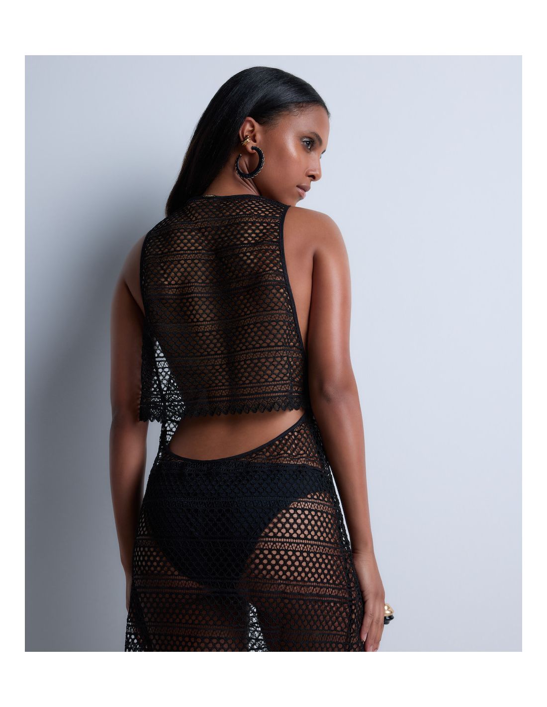 Pouvant être portée près du corps ou dans un style plus fluide, la robe By The Sea habille toute la silhouette de sa dentelle ajourée aux motifs géométriques résolument modernes pour une allure entre sophistication et décontraction. Dans le dos, elle présente une ouverture très sexy qui dévoile la peau.