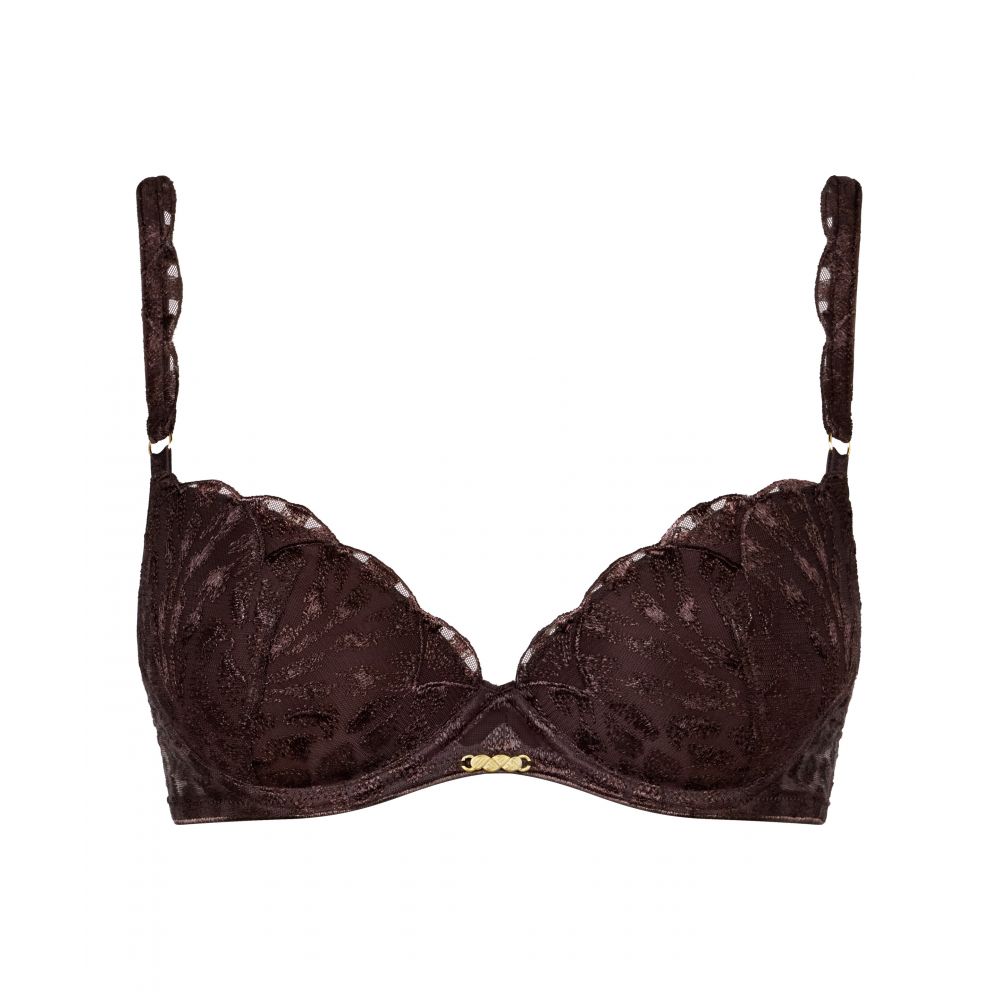 Intégrant des coques ton sur ton, le soutien-gorge plunge coque Crazy in Love dessine un décolleté profond, sexy et galbé, à l’effet push-up naturel souligné à l’entregorge par un bijou doré raffiné. Confortable grâce à ses bretelles larges, il offre une silhouette tout en maîtrise et en sensualité, résolument moderne.