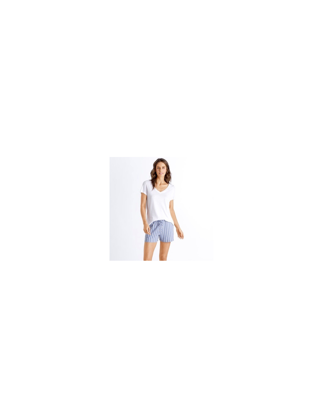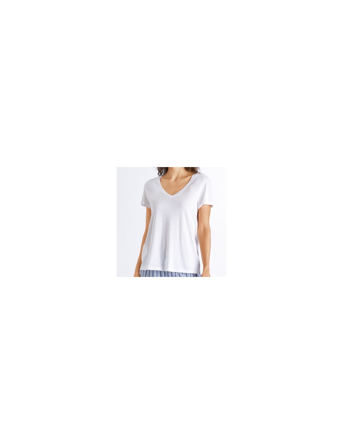 T-Shirt Manches Courtes Col V, Sleep & Lounge - Blanc, Hanro, 077876-0101