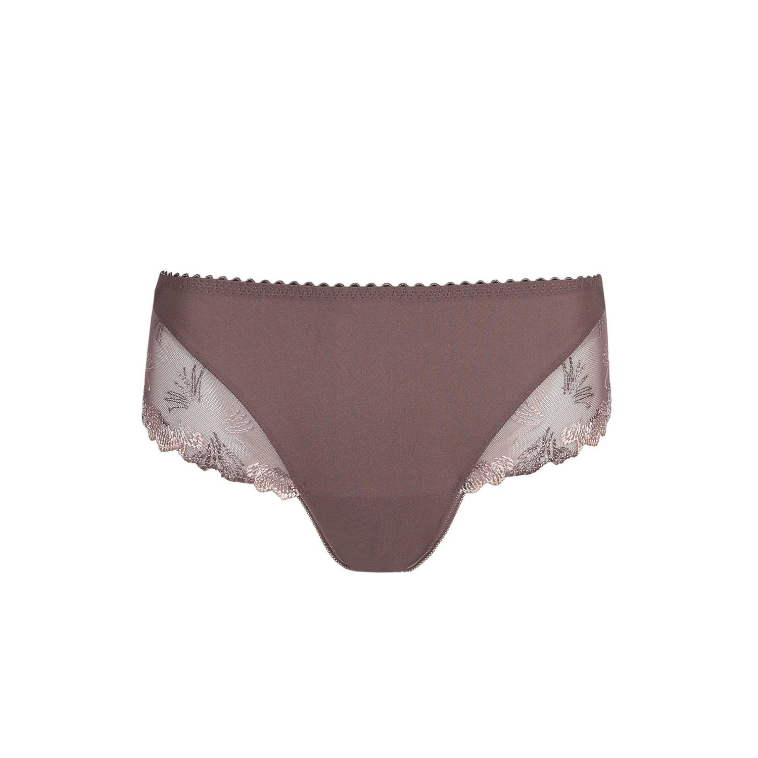 String luxueux PRIMADONNA Plume en maille microfibre extensible. Les côtés sont élégamment habillées d'une broderie florale sur tulle aux reflets satinés, conférant une certaine luminosité au modèle. Imprimée sur le devant et unie à l'arrière, la maille apporte une véritable identité graphique en affichant des petits carreaux au charme irrésistible. Les tours de cuisses sont quant à eux mis en valeur par des petits picots dentelle aux finitions ultra-plates, pour un porter discret sous les vêtements. Sa coupe échancrée en fera un atout séduction des plus sensuels ! Fond doublé 100% coton.